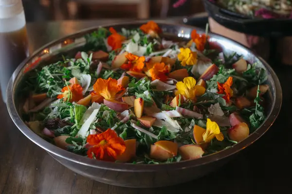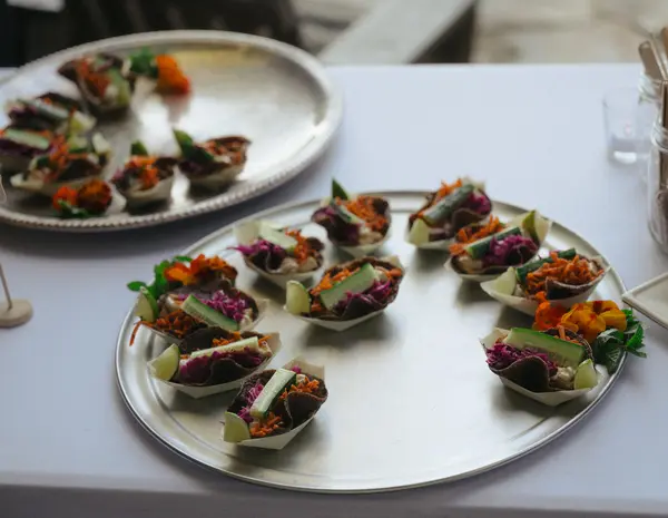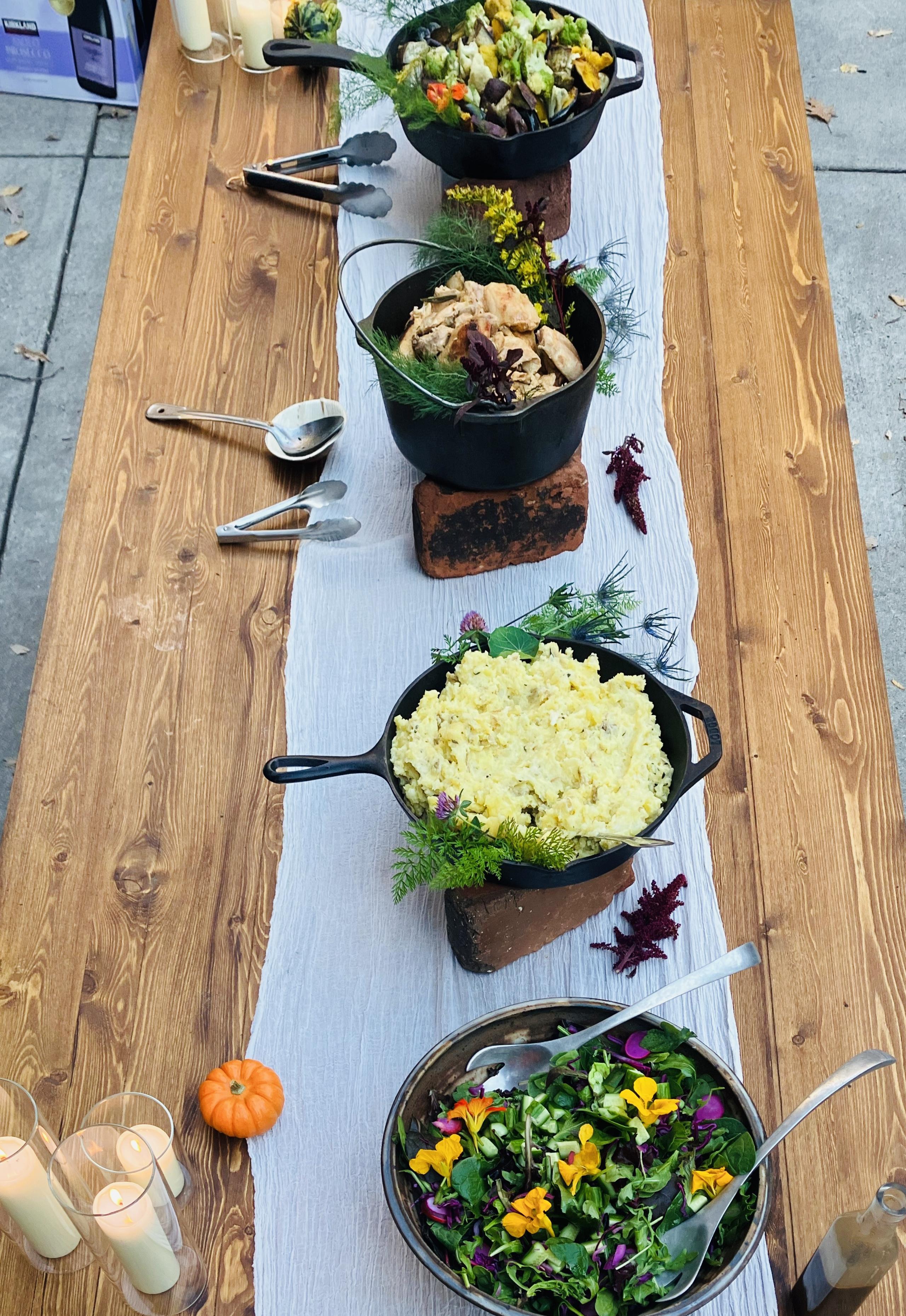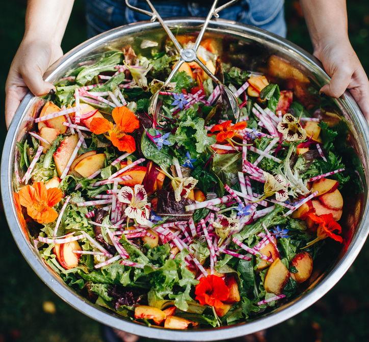 We cater using our mobile catering kitchen allowing us to prep a lot of the food we serve on site. We work with a number of local farmers and bakers in our ingredient sourcing. We grow almost all of our own edible flowers and herbs for garnishing.