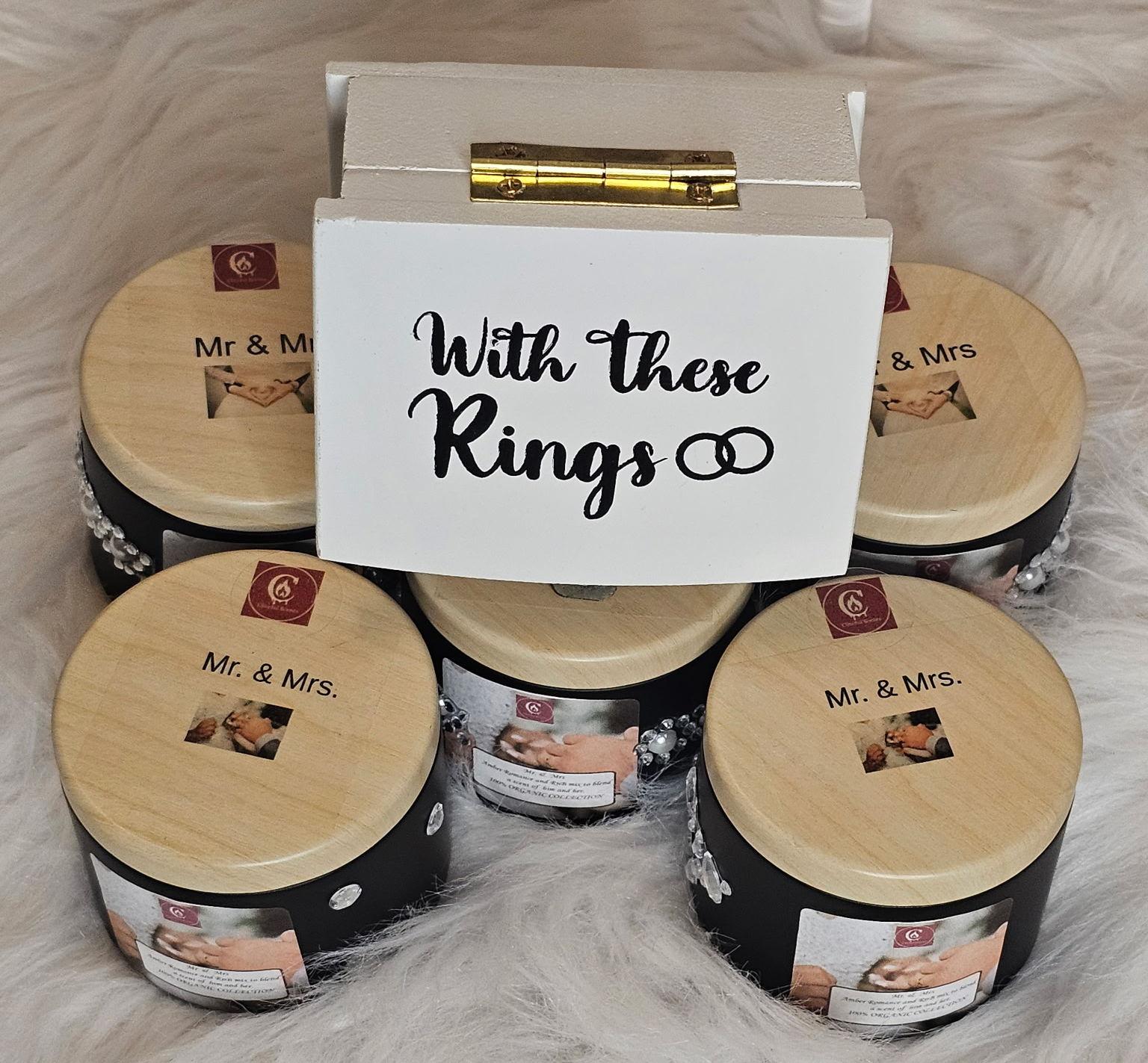 The wedding vases are amazing beautiful. Designs are unique and custom made if you ask. The 4oz scented wedding candles were great party favors for all the guest. They were a great ideas. I will be using your services and products again! Thank you