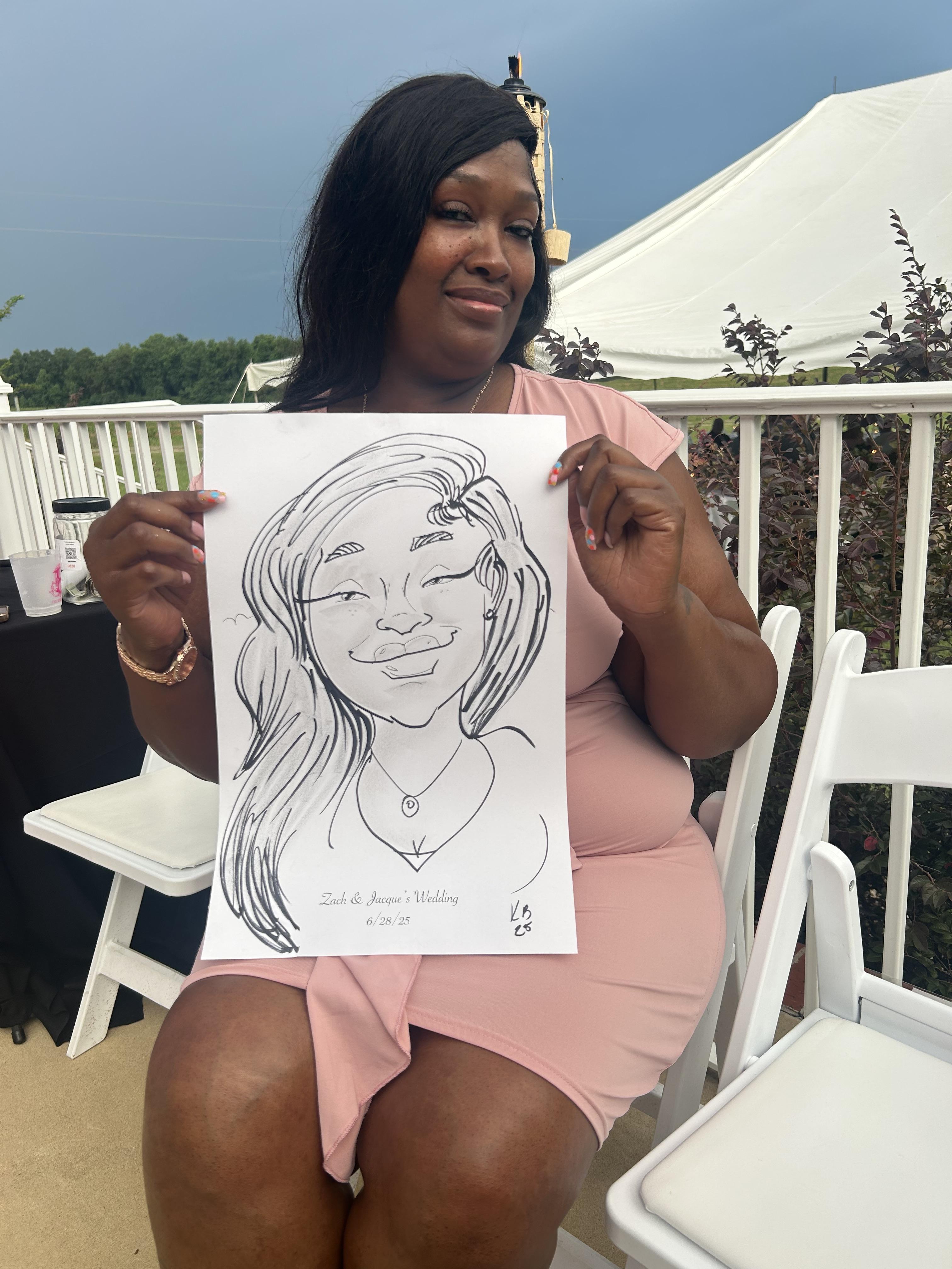 We had the absolute pleasure of having Caricatures By Kathy at our wedding, and she completely exceeded our expectations! Not only did she bring such a fun and unique element to our celebration, but she also went above and beyond to truly connect with our guests. She was intentional, engaging, and brought so much joy to everyone she interacted with. People are still raving about how incredible she was! Kathy made each guest feel special, and her sweet personality made the experience even more memorable. Every caricature was done in the most flattering and thoughtful way—she made sure everyone looked their best while capturing their unique personalities. Through her incredible talent and warm presence, we were able to give our guests memories to last a lifetime. We can’t recommend her enough and look forward to using her for future events!