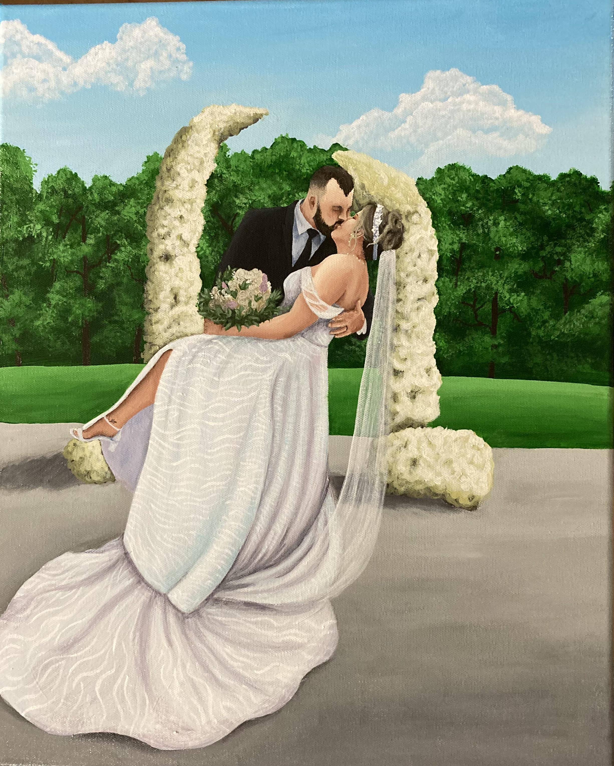 What sets me apart is the way I blend entertainment and artistry. Guests get to watch your painting unfold in real time, adding a unique experience to your wedding day, while you receive a custom heirloom that captures your love story in a meaningful, timeless way. I focus on both the emotion and atmosphere of your day, so your painting feels just as alive and beautiful as the memories themselves.