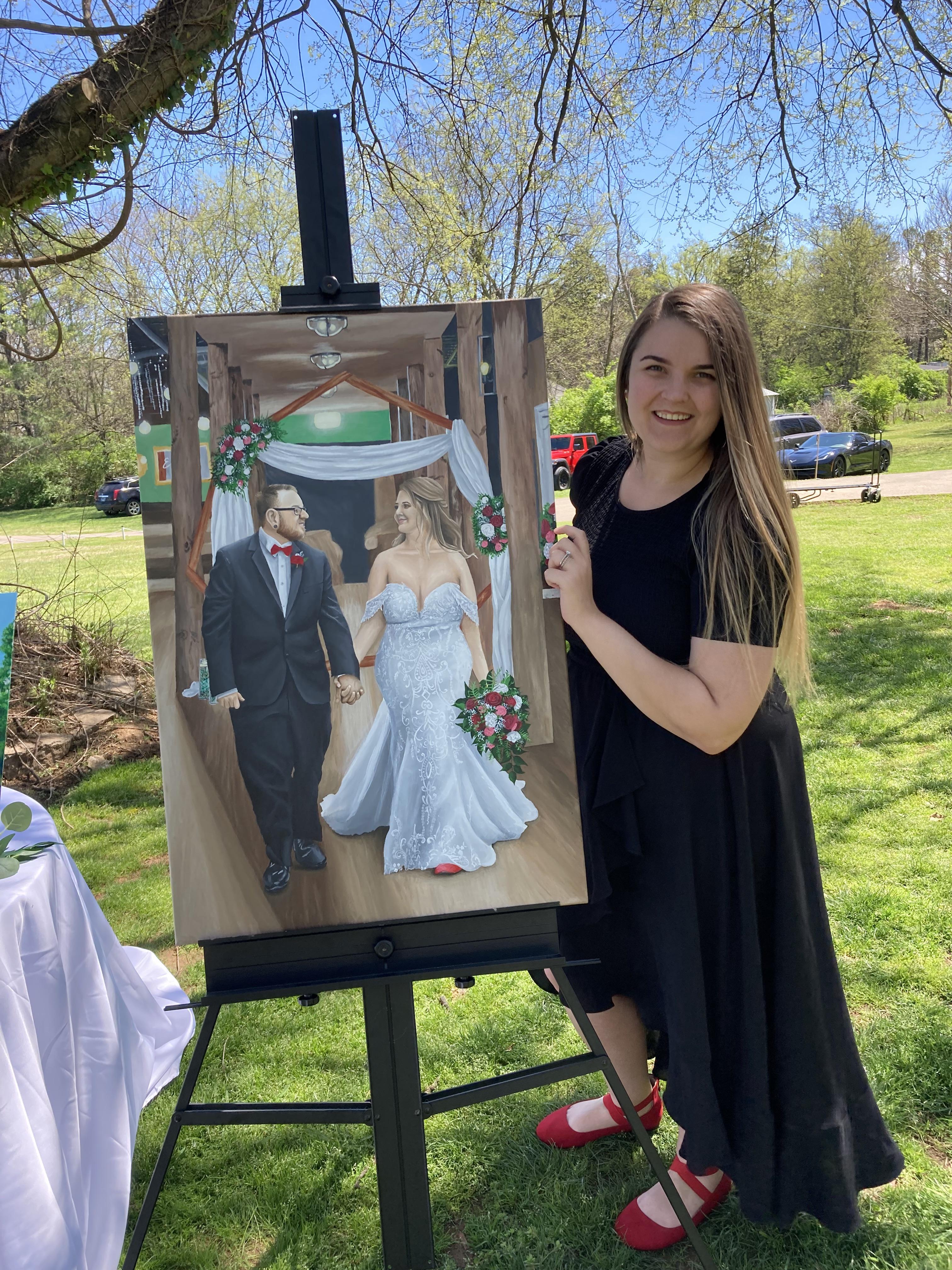 EMC Create was an absolute pleasure to work with for our wedding day. From the very first interaction, her communication was responsive and professional, putting us at ease throughout the planning process. On the day of, she captured every special moment with such care and creativity - she even added our dog into the painting! The final painting is truly memorable and worth every penny. We are thrilled with the quality of her work and would highly recommend EMC Create to any couple looking for a talented and dedicated painter to help make their wedding day unforgettable.