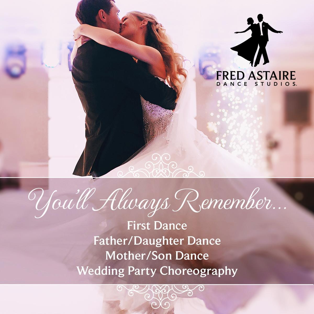 Work with Fred Astaire Dance Studios to make your Wedding Day the best day you’ve ever had! We want to help you personalize your “First Dance” so that you can impress your family and friends. Learn the technical dance skills and improve your self-confidence, elegance, and flair to show off your unique personality through this dance. Join us today to help make some everlasting wedding memories!