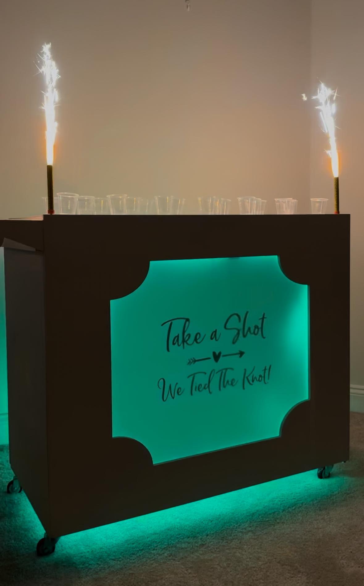 Cart rental for any celebration! Cart can be used as a shot cart, charcuterie table, champagne holder and anything else you can think of! We can make any idea come to life with it! Our goal is to make your celebration unique and memorable.