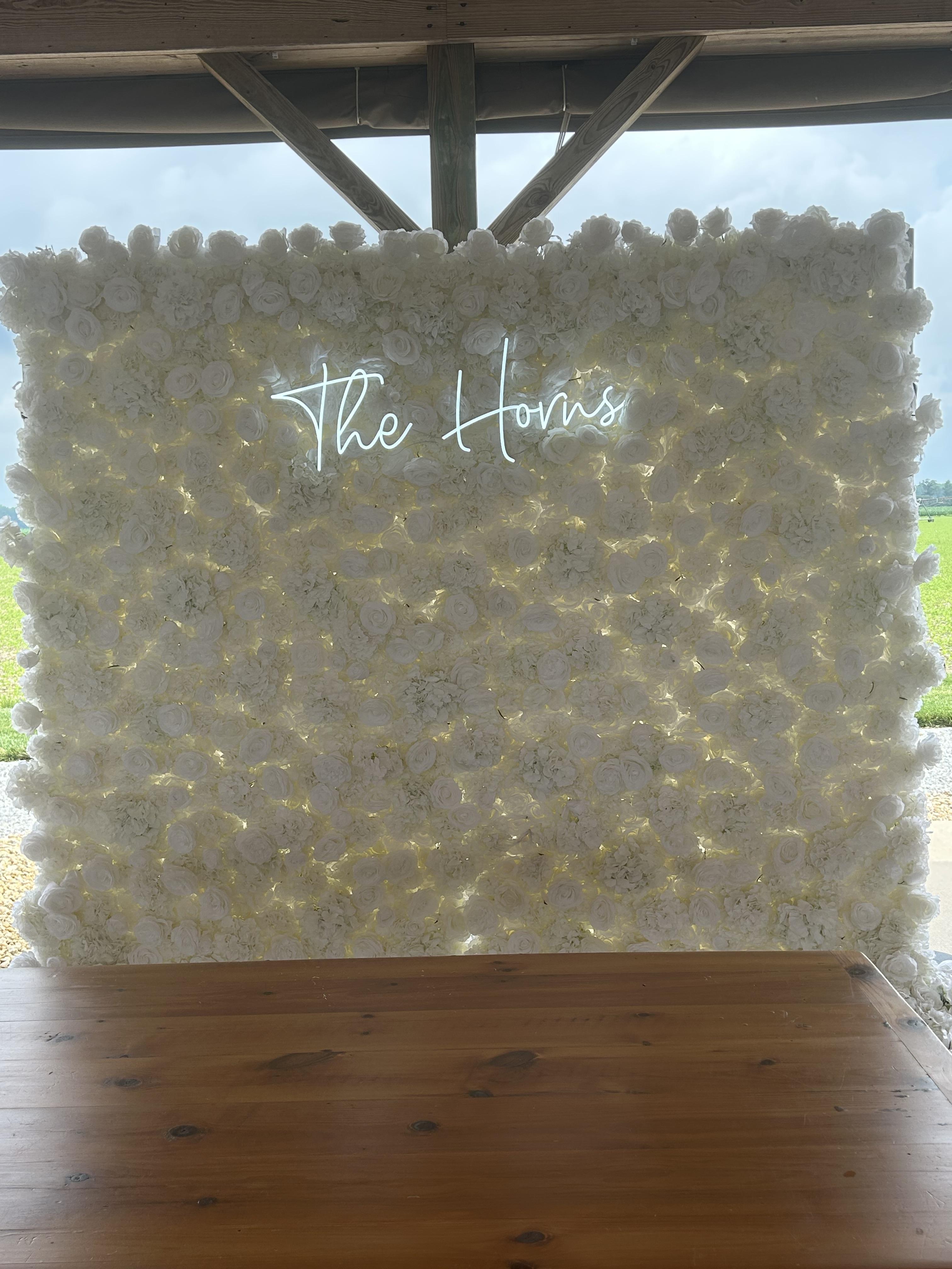 JMJ Flowerwalls was a pleasure to work with for our wedding. From our first conversation, Jayla and the team were professional, kind, and incredibly helpful. They listened closely to our vision and worked with us to bring it to life. On the day of the wedding, Jayla expertly set up one of their stunning greenery walls and attached our own neon sign to it, creating a beautiful and personalized backdrop for our ceremony. The wall looked absolutely gorgeous in our photos and received so many compliments from our guests. JMJ Flowerwalls truly went above and beyond to make our special day perfect. We would highly recommend them to any couple looking for exceptional event decor and service.
