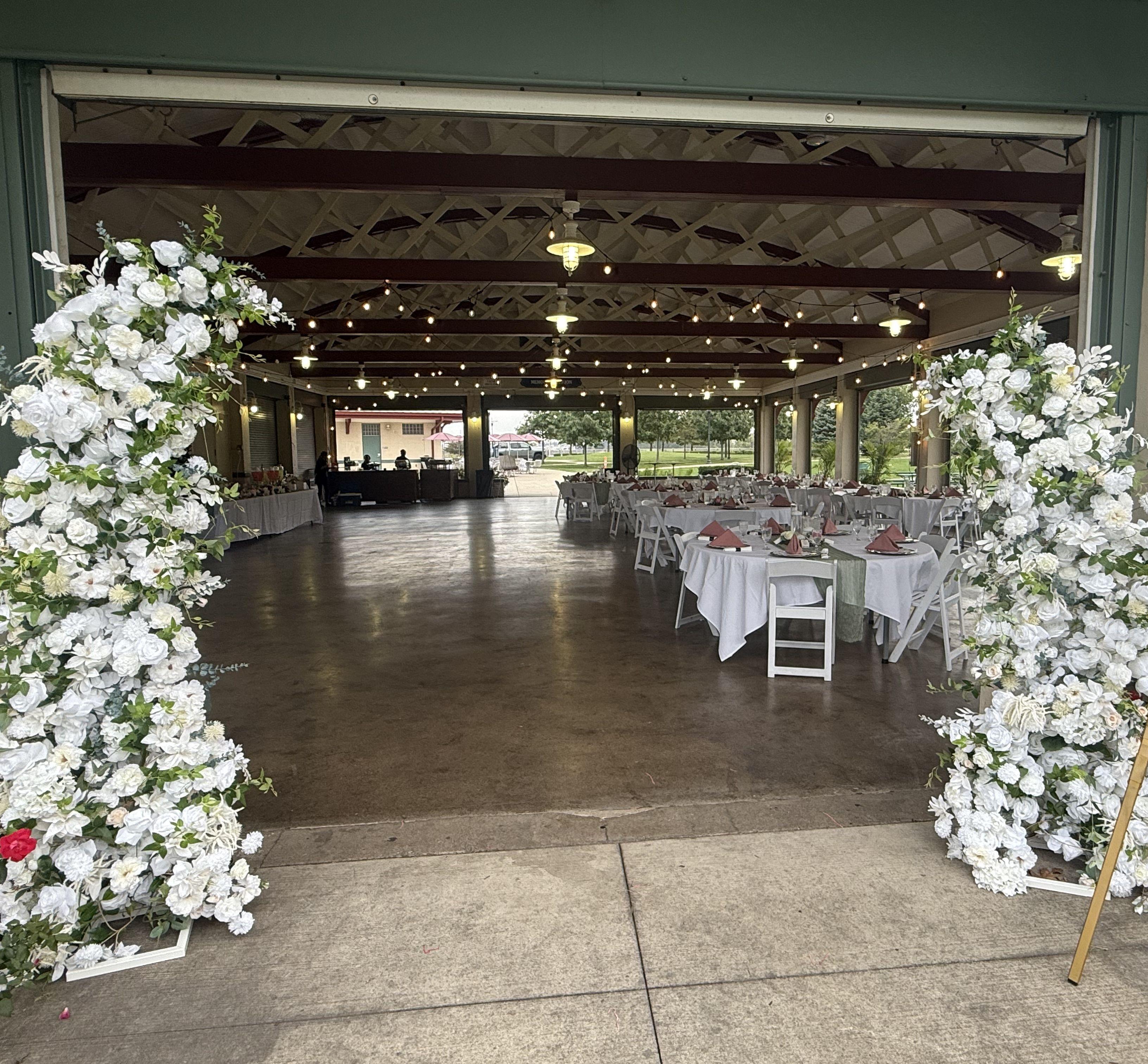 Our Luxurious White Floral Arch A timeless and elegant statement piece—perfect for ceremonies, sweetheart tables, or photo ops. Available for a full-day rental within 45 miles of Valparaiso, IN. Additional fee applies outside the service radius.
