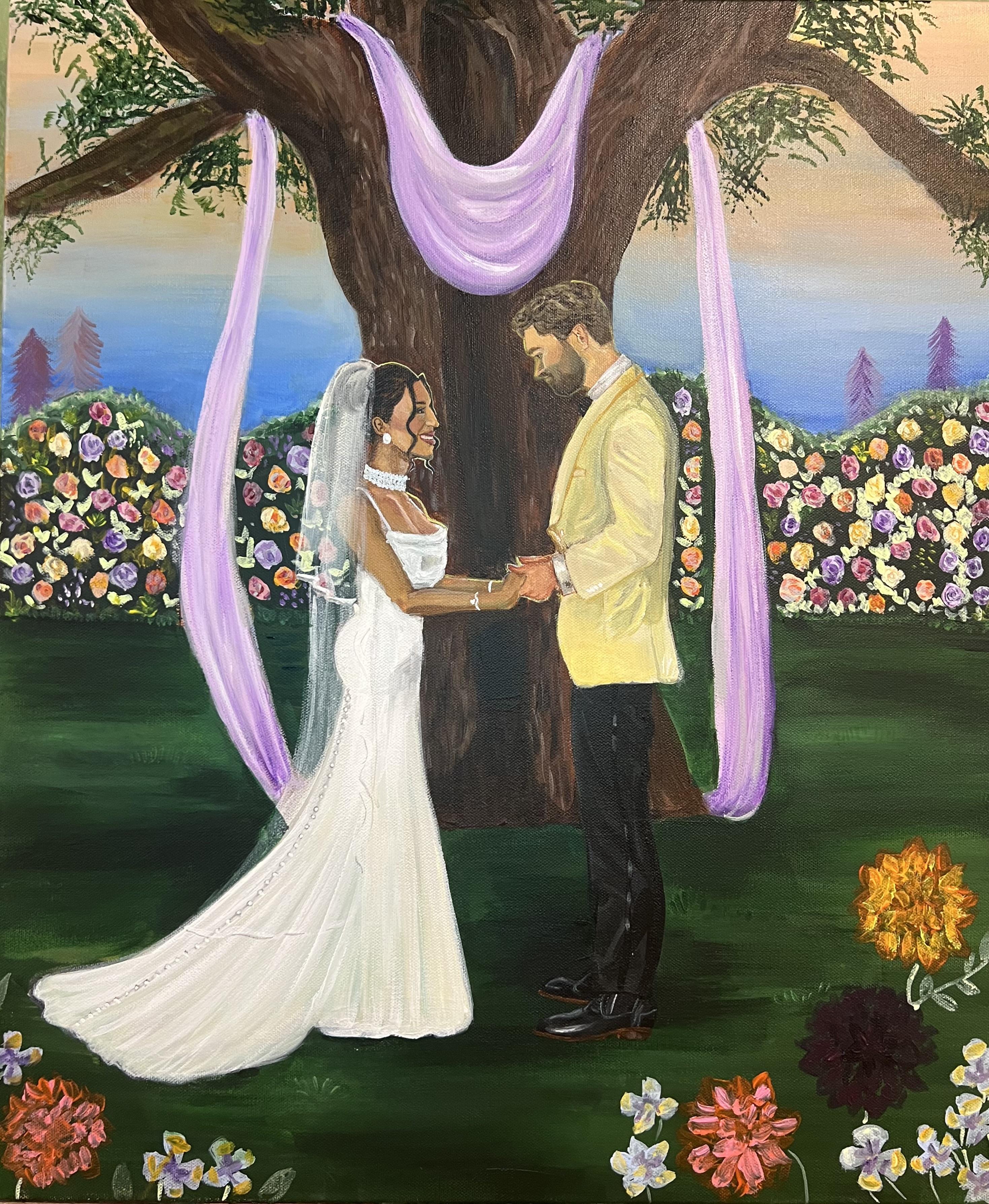Wamika painted our special day, and it was absolutely perfect! She captured every detail and aspect, resulting in an amazing masterpiece. Our friends and family loved the idea, and it was wonderful to see their reactions. We LOVED the experience and are already thinking about our next event together! We highly recommend her! She’s a very talented person and an excellent professional.