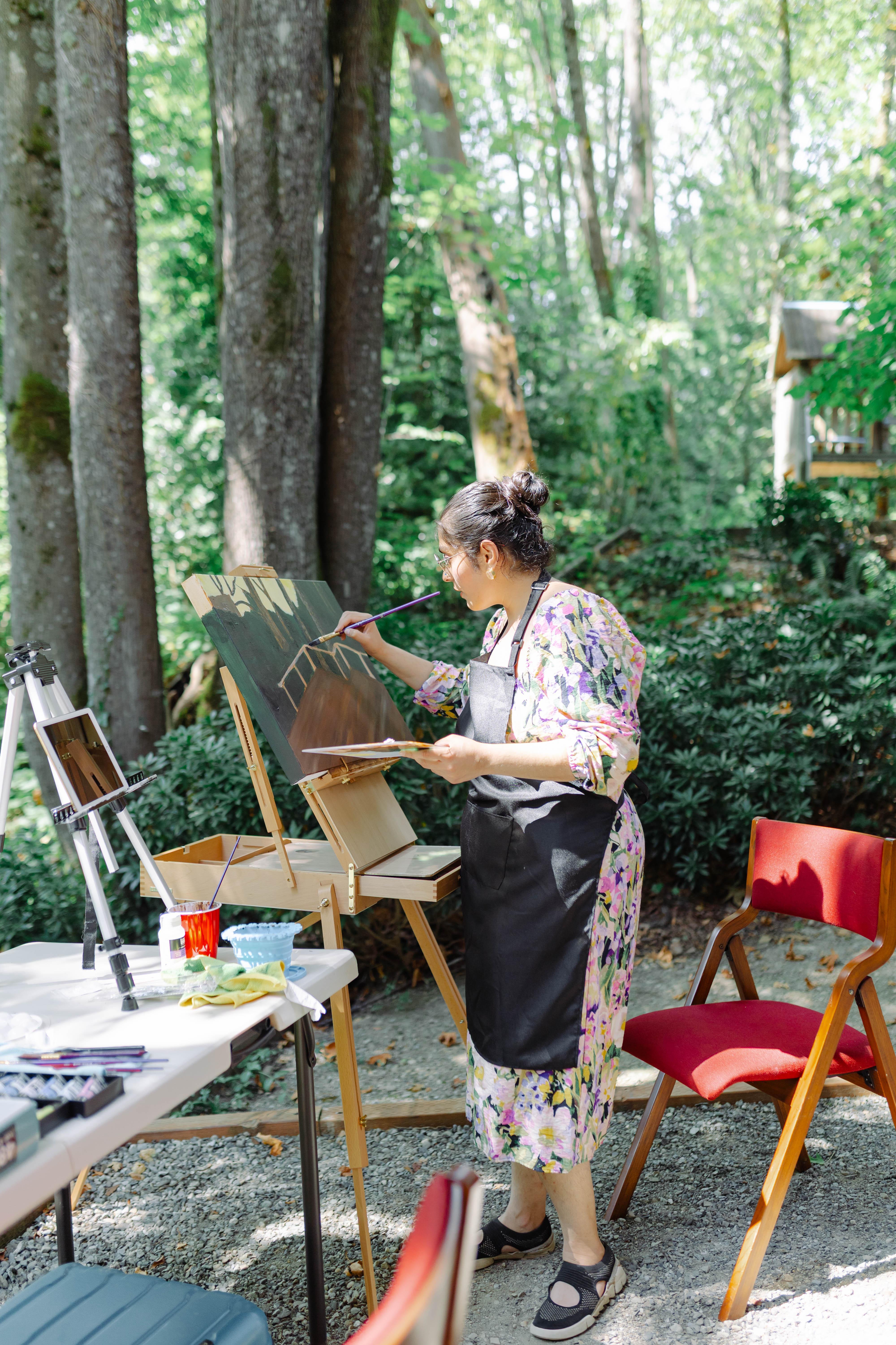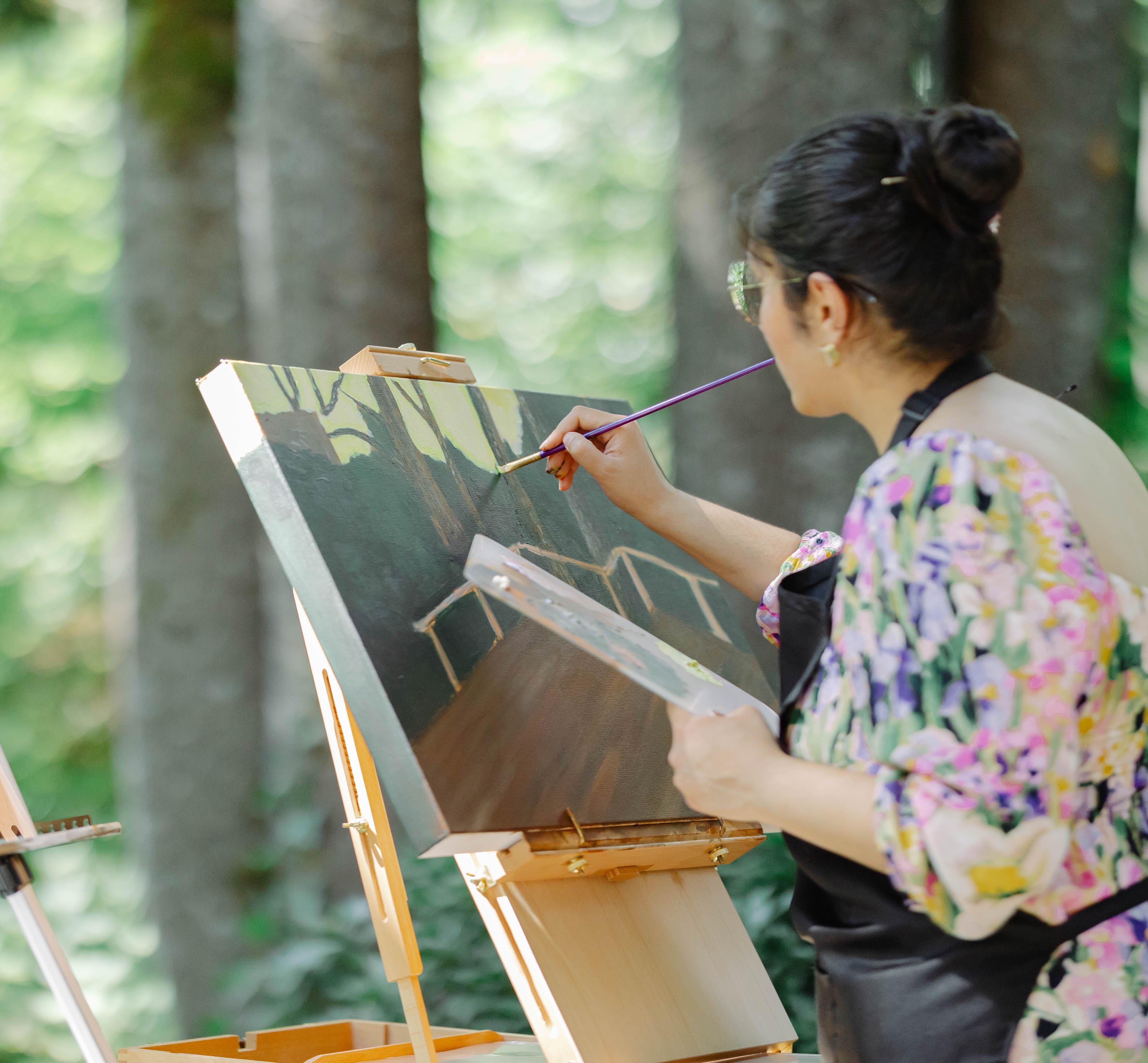 What sets my live wedding paintings apart is the unique blend of intimacy, storytelling, and thoughtful detail. I focus on the meaningful, often overlooked moments: the bouquet your grandmother grew in her backyard, the golden hour during your reception, the watch your father passed down, or fleeting expressions that reveal the true spirit of your celebration. What truly makes my work distinctive is the intimacy I weave into every piece. I hide “easter eggs” — subtle, personal details only the couple knows to look for.