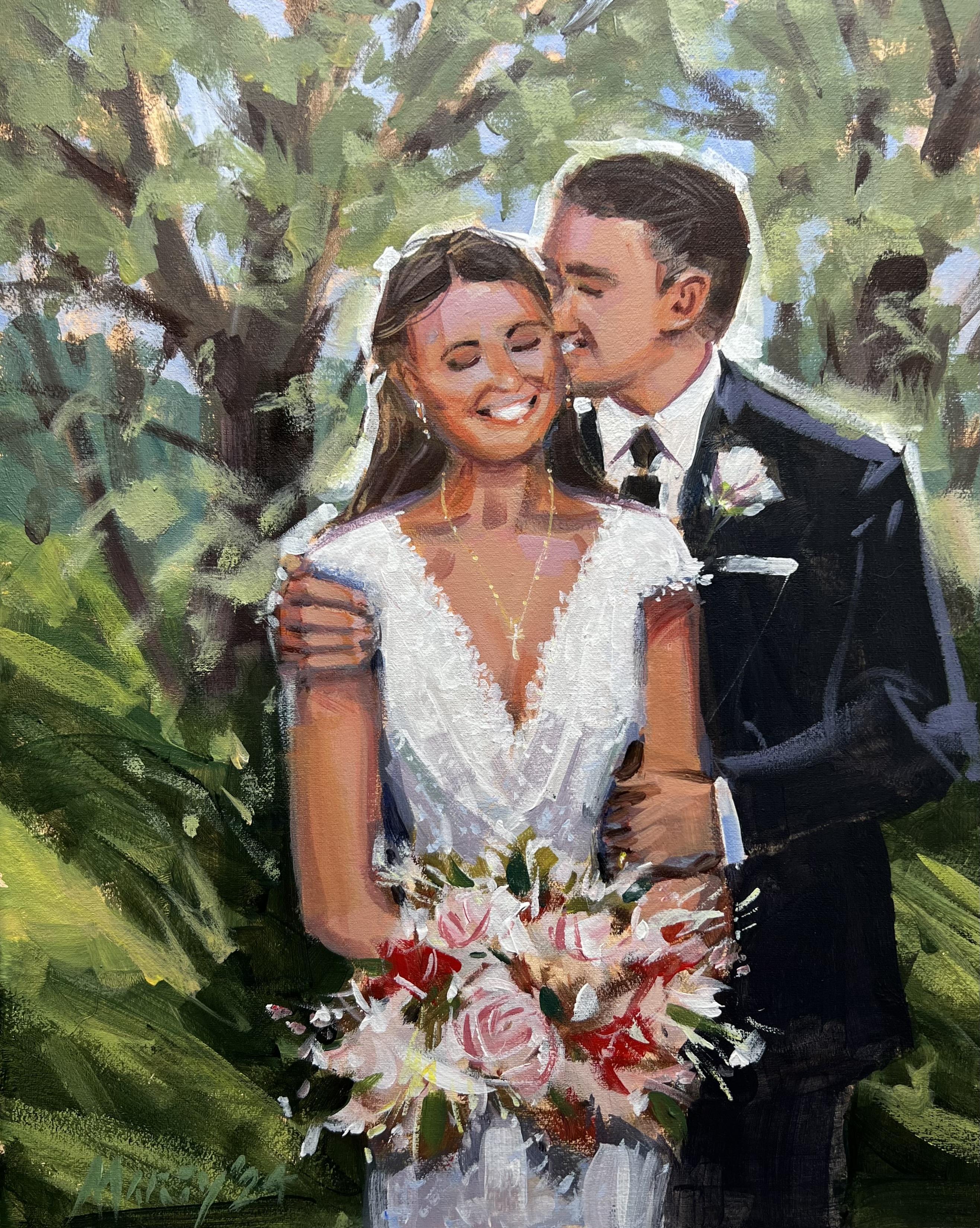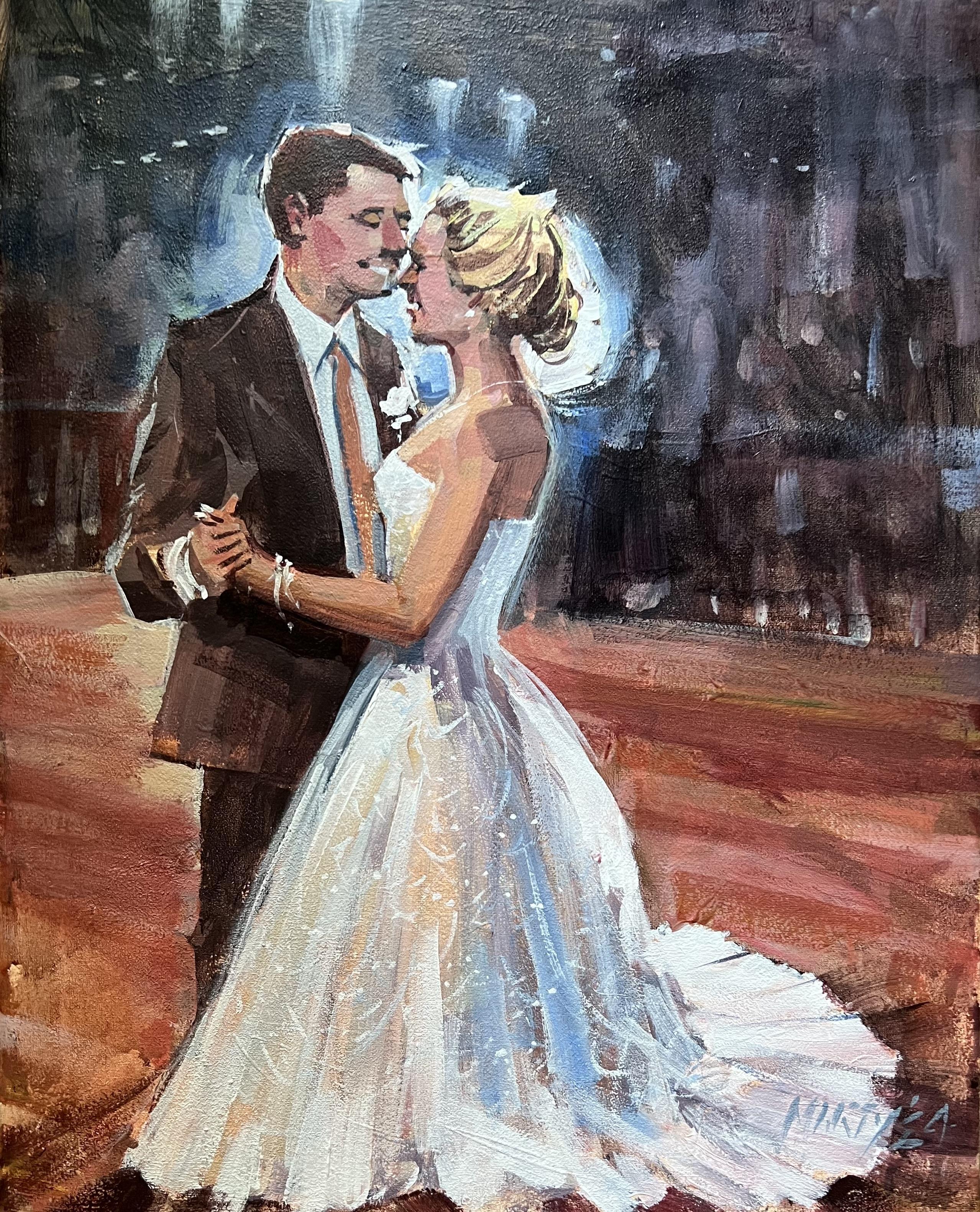 With over fifty years of experience meeting deadlines and working as a professional artist in the St. Louis area, becoming a live wedding painter has proven to be my most rewarding experience yet as an artist! This is so much fun! I’m extremely fortunate to be able to capture these joyous and emotional, forever moments in real time on canvas.