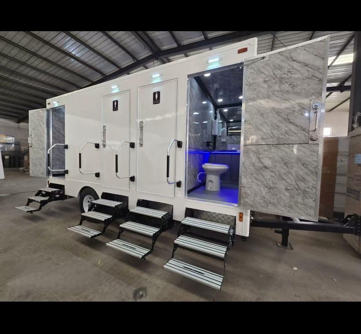 -Unmatched Luxury – Our units feature high-end finishes, climate control, LED lighting, and elegant interiors that feel more like a boutique hotel than a restroom. -Impeccable Cleanliness – Every rental is thoroughly sanitized before delivery and maintained to the highest standard throughout your event. -Full-Service Experience – We handle delivery, setup, and pickup so you can focus on your guests, not the logistics. -Event-Ready Style – Sleek black-and-gold branding complements upscale weddings, corporate events, and VIP gatherings.