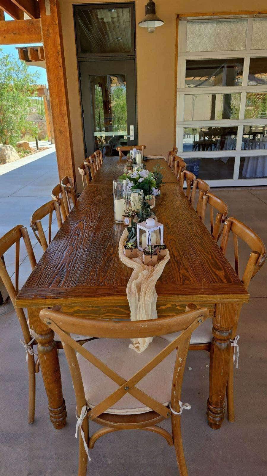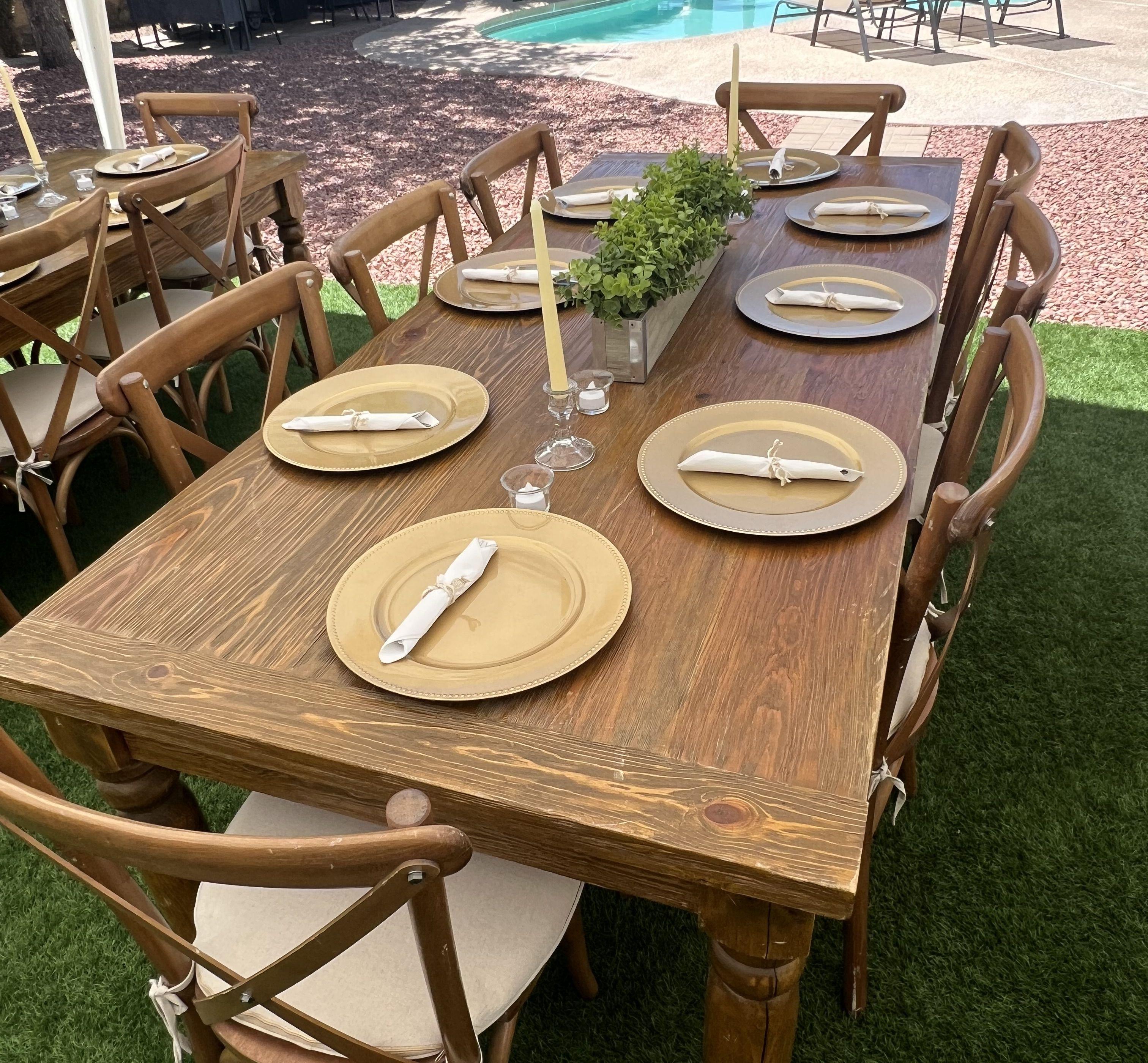 I rented the solid wood tables and chairs for my graduation party, and they completely transformed the whole vibe! Instead of the usual plastic tables with boring linens, these made everything look so classy and warm. Everyone kept asking where I got them because they added such a special touch. The team was amazing—on time, super straightforward, clear with pricing, and honestly the nicest people to work with. The tables were sturdy, beautiful, and made my pictures look incredible. Highly recommend if you want your event to feel elevated and stress-free!