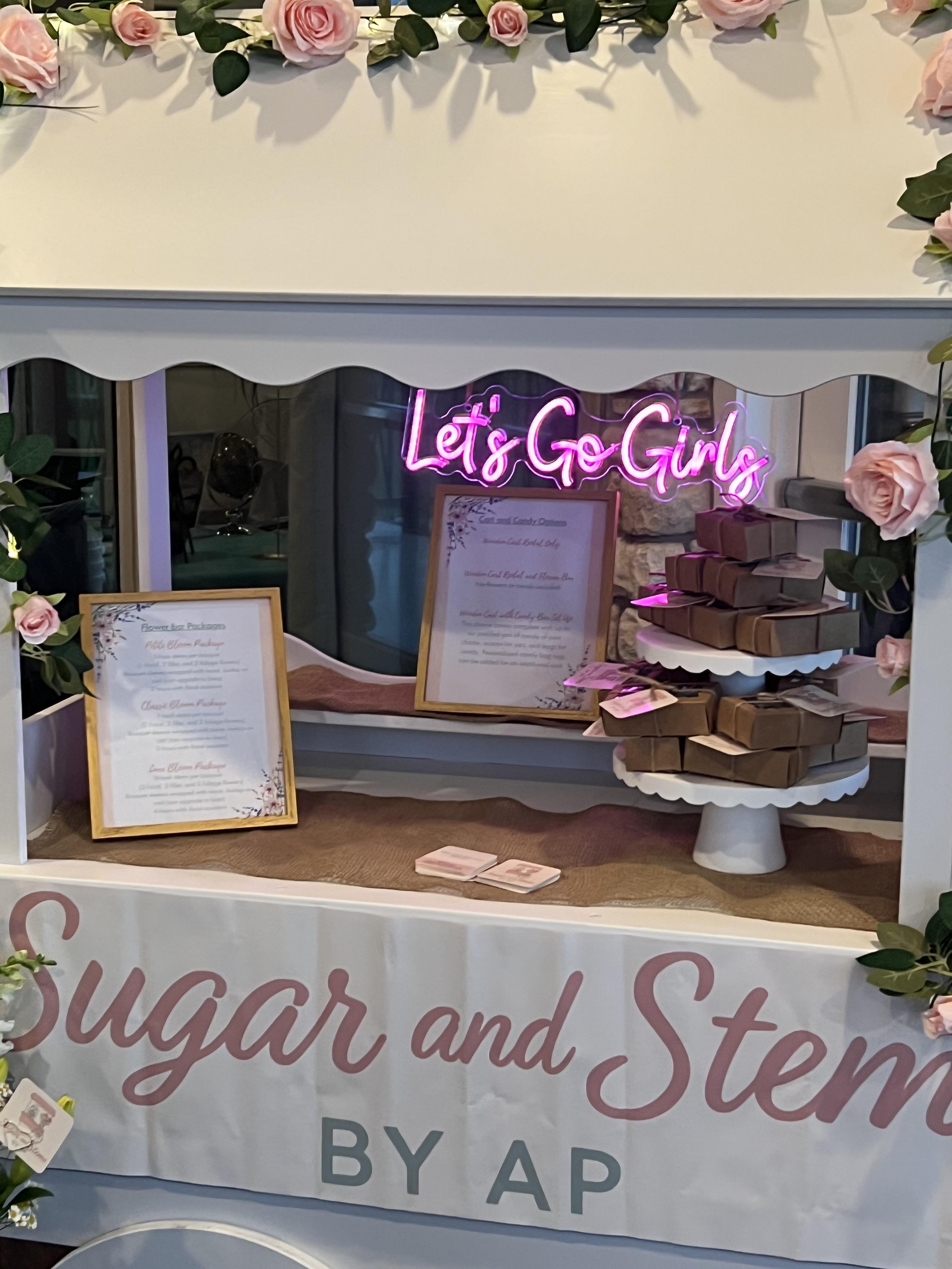 At Sugar & Stems By AP, we don’t just show up — we elevate your event. Our custom carts are designed to be interactive, photo-worthy, and fully tailored to your vision. ✅ Unique & Hands-On – Guests don’t just admire our flowers — they build their own bouquets or treat themselves to a candy bar styled just for your theme. ✅ Stylish Design – From elegant florals to playful sweets, our carts are decorated to match your vibe, whether it’s romantic, rustic, modern, or whimsical. ✅ Stress-Free Experience – We handle the setup, styling, and restocking so you can focus on enjoying your day. ✅ Locally Rooted – Proud