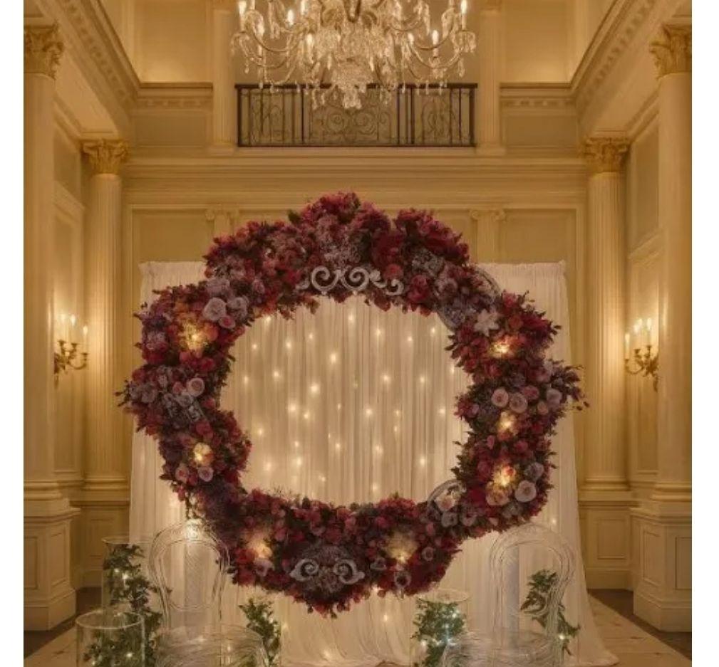 Absolutely Stunning Wedding Décor Piece! As a professional wreath maker for many years, I can honestly say this large circular floral wreath is exceptional. The craftsmanship and attention to detail are top-tier — every bloom and leaf is beautifully placed, creating a luxurious, full design that instantly elevates any space. It’s incredibly versatile, too! It can be used as a breathtaking backdrop for the bride and groom’s sweetheart table, and it also makes a gorgeous focal point for photo ops that guests can’t resist posing with. The scale is impressive — big enough to make a statement, but still elegant and refined. The quality of the materials really stands out. It’s durable, well-balanced, and built to last through setup, takedown, and transport without losing shape. Whether you’re planning a romantic garden wedding, a glam ballroom affair, or a modern minimalist ceremony, this piece is the perfect finishing touch. Truly a showstopper — it transforms an event from beautiful to unforgettable!