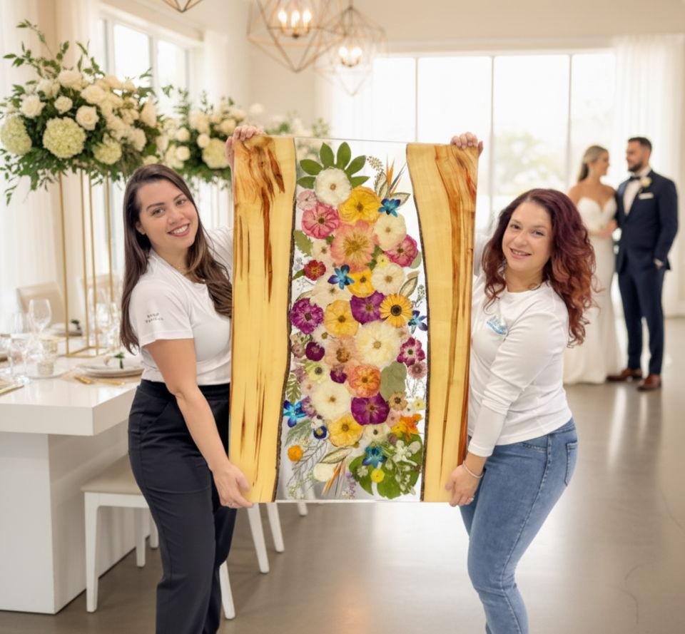 Wild Coast Flower Preservation transforms your wedding bouquet into museum-quality, functional home decor using UV-resistant, food-safe epoxy resin. With over 18,000 bouquets preserved, we're known for a 3-5 month turnaround, unmatched customization and service. Our handcrafted pieces become part of your everyday lifeâfrom serving trays and coasters to wall art and jewelry. Each piece is made in Florida by skilled artisans, with design approval before final creation. We offer hassle-free prepaid shipping labels at discounted rates, real-time updates, and the ability to create multiple keepsakes from one bouquet. Your flowers, your way!