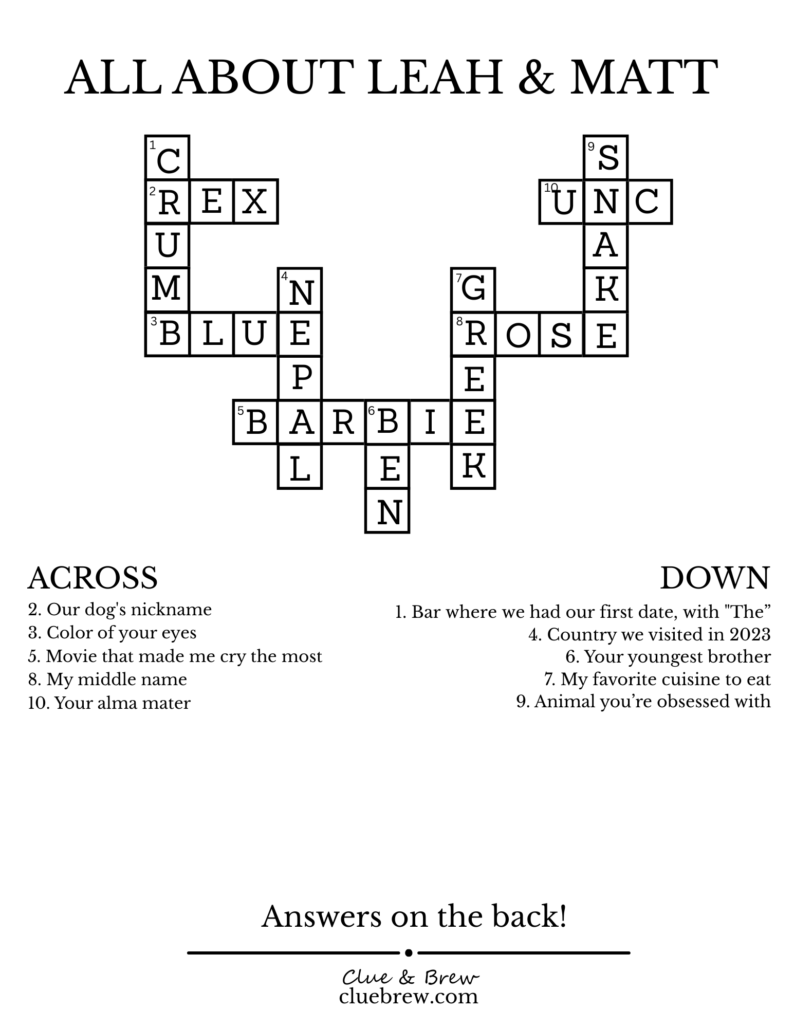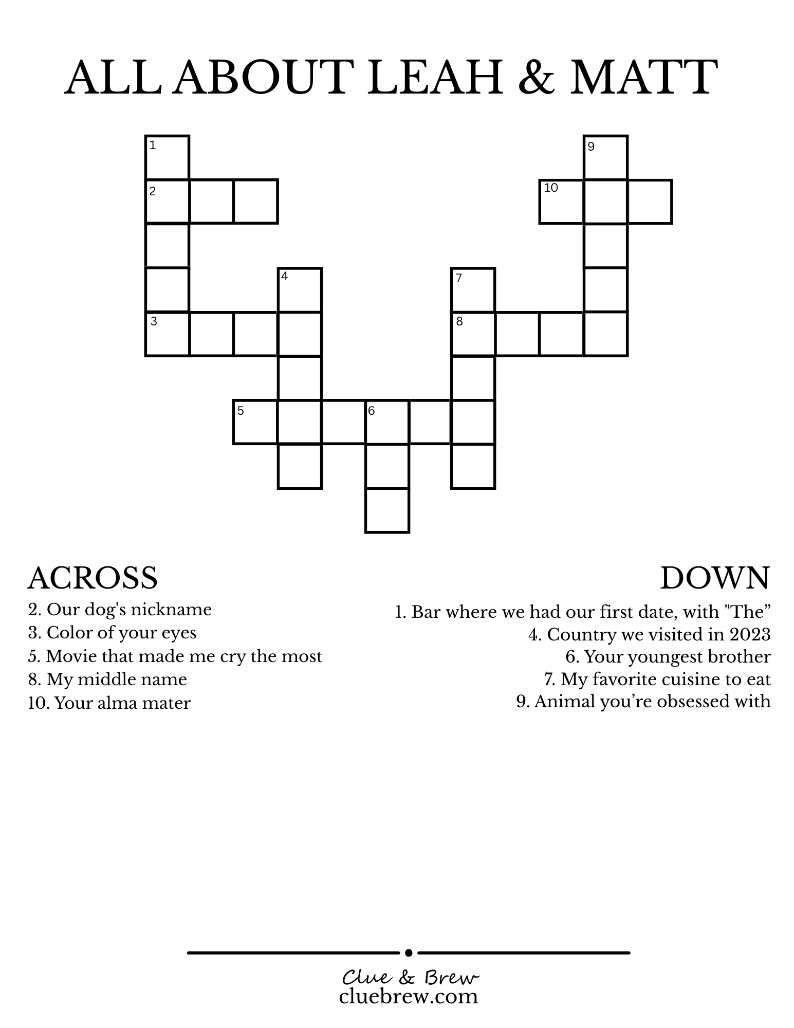 This custom crossword service is fantastic! My wife and I used a personalized puzzle for our wedding cocktail hour, and it was a huge hit. Communication was excellent from the start, and they made it easy to incorporate our personal details, inside jokes, and even guest quirks into the clues. The turnaround was incredibly fast. Our guests loved solving it, laughing and reminiscing. It truly added a unique, memorable, and interactive touch to our special day. Highly recommend for any event where you want something truly personal!