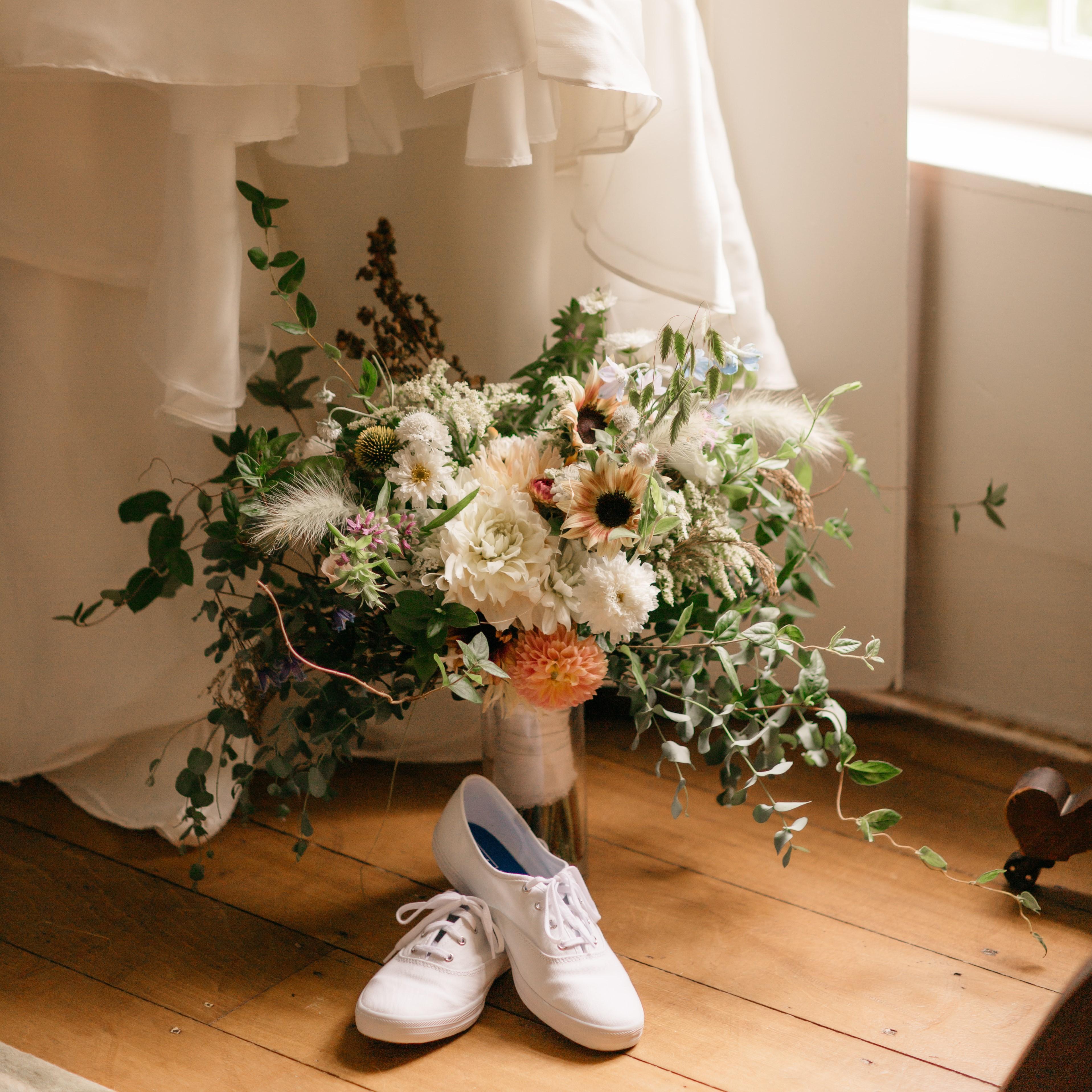 I loved working with Julie to plan the florals for my wedding in October 2020. Julie accommodated our budget and ideas so easily that my florals were the most stress-free part of the wedding! Arranging the flowers with my mom and sisters the night before also gave me a true sense of ownership over a wedding that had to constantly change during the pandemic. Sustainability and supporting local businesses was a central value for planning our wedding, and Julie checked all those boxes for us with biodegradable confetti that we used as table decor and I repurposed in Christmas ornaments as gifts. We also dried our floral arrangements! I highly recommend working with Julie and supporting Agape Fields!