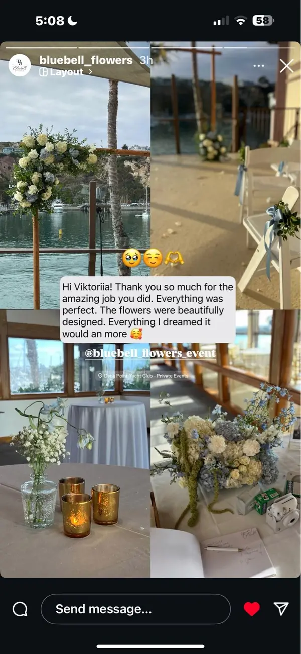 We combine high-end floral design with personalized service to create unforgettable experiences. At Bluebell, we don’t just deliver flowers — we craft visual stories that elevate your event. Our attention to detail, fast communication, and flexible, client-focused approach set us apart. Each arrangement is made fresh, styled with intention, and tailored to your vision.
