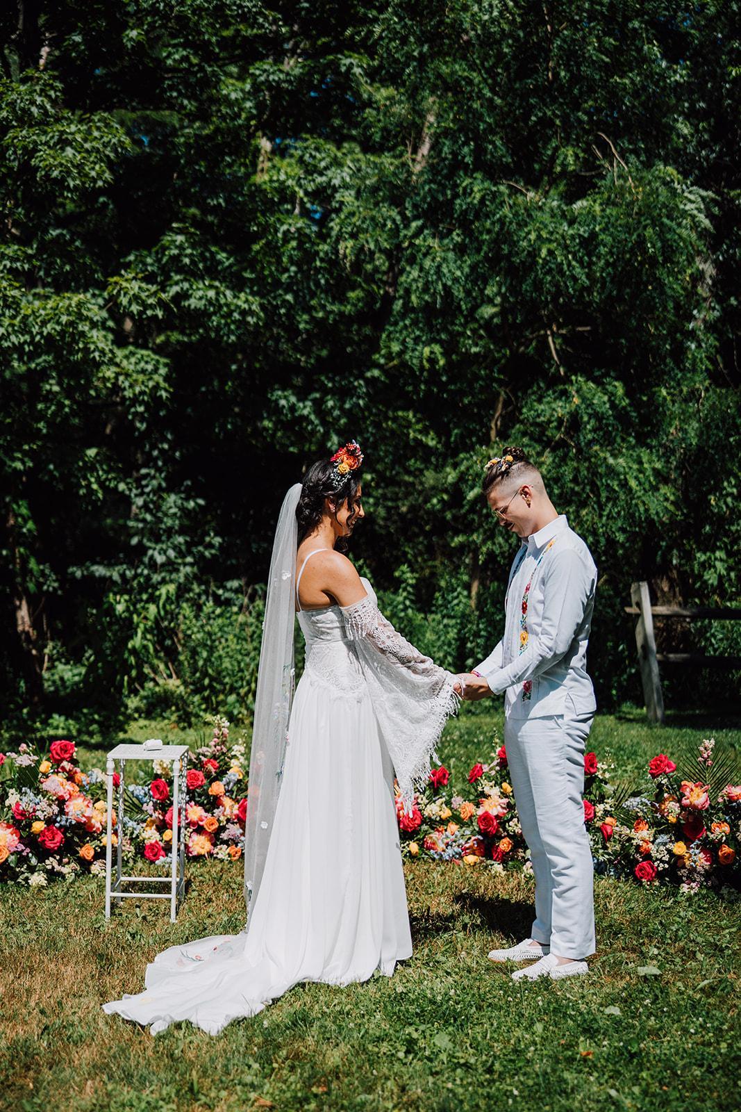 Cory did a phenomenal job arranging all of our florals for our July wedding. We had a very specific vision for the colors, types of flowers, and foliage for a grounded floral arch, cascading bouquet, and bud vases for our reception tables. Leading up to the wedding, Cory was incredibly communicative; calling us to discuss different ideas for our grounded floral arch, the seasonal availability of certain plants, and making sure that everything was just the way we wanted it. In our planning, she invited us to tour her gardens and greenhouse, where it was clear that she has a deep personal care for the quality of her work and her relationships with clients. On the day of the wedding, she was on-time and had all of our displays, vases, and bouquets assembled, and installed them discreetly and beautifully. All of the plants that she used were extremely fresh and lasted our entire 8 hour outdoor summer wedding! If we were to ever need any sort of floral arrangement done in the Finger Lakes region again, we would absolutely be going back to Cory!"