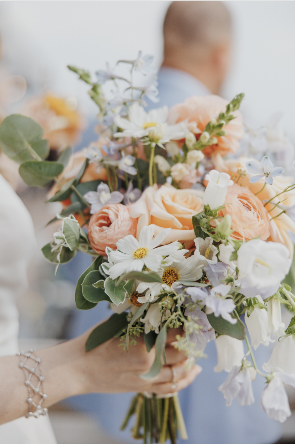 A simple collection of personal florals in your colorways with designer's choice varietals, perfect for your wedding day. This package includes bouquets, boutonnieres, bridal party and family florals—just the essentials you need to get married. Easy and convenient, with pickup on the day of your event at our garage studio in downtown DC near the Wharf.