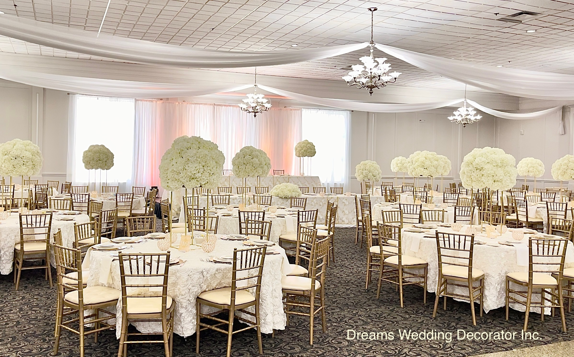 With 18 years of experience we have an eye on every detail, and with our high quality products we will make your event an extraordinary , unforgettable place. From fresh or silk flowers, unique table centerpieces, crystal centerpieces, table linens, overlays,charger plates,lighted columns, pillars, ceilling draperies, chair covers fitting all type of chairs, chiavari chairs, backdrops, up-lights and much more..... We do it all!