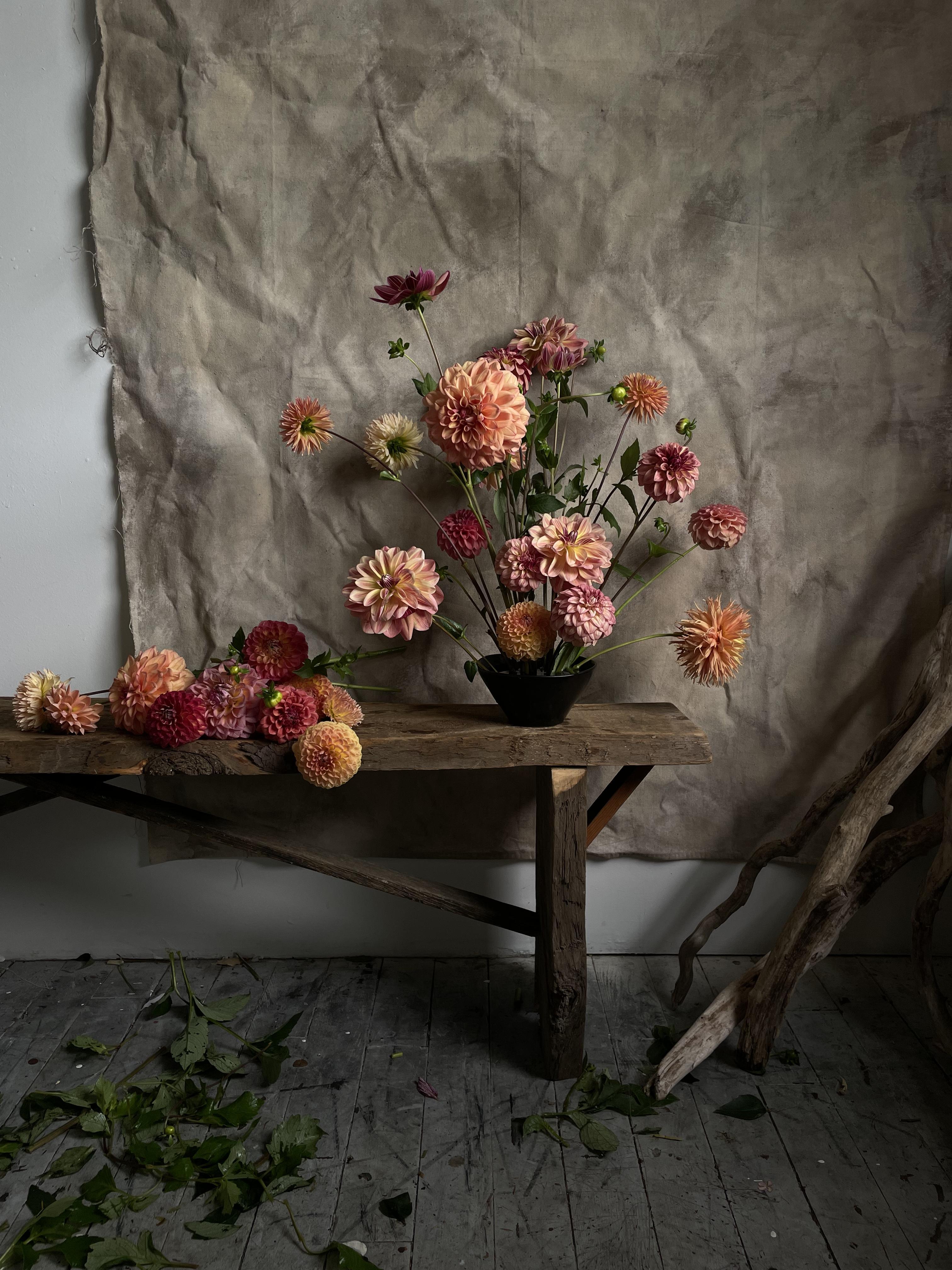 I have 20+ years in the hospitality industry and a multifaceted career path in the arts, documentary photography, gardening + landscaping. All experiences that inform the design process. EPHEMIRUS has a deep commitment to the natural world. When achievable, we source from local gardens + farms and forage from the landscape around us. We believe telling the story while showcasing the New England terroir is what makes floral design so special. We strive to use foam-free and other eco-friendly mechanics in our designs.