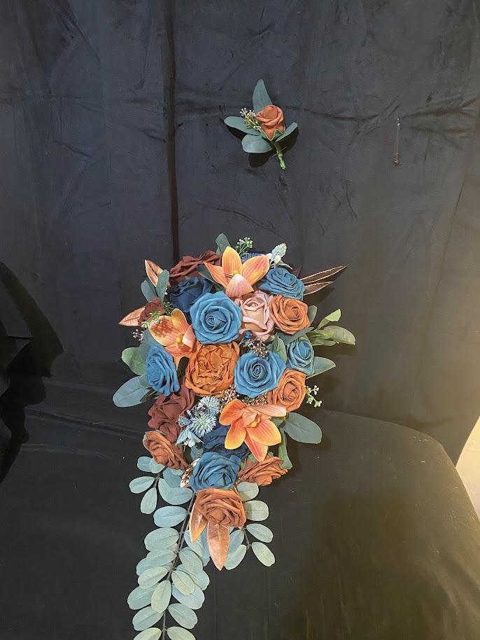 I only take 1 wedding a weekend. I love working with silk flowers because you can have any color theme imaginable which makes it fun. I can either ship your items or have them delivered. If delivered I hang around and pin on boutonnières and make sure everything looks good before I leave. Share your color theme, how many in your party and any decor for a free same day estimate. You would be surprised! Check me out!
