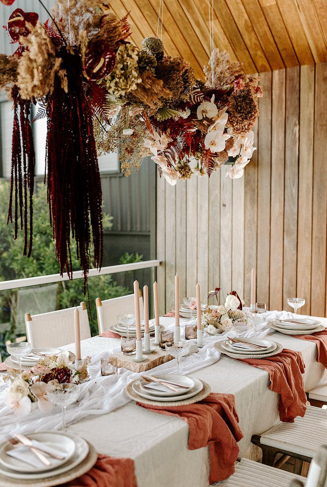 We are the perfect mix of romantic and more edgy floral designs and love to think ouside the box when it comes to large scale installations and table arrangements! We love to work with design focused couples who know what they want + know we can create it for them.
