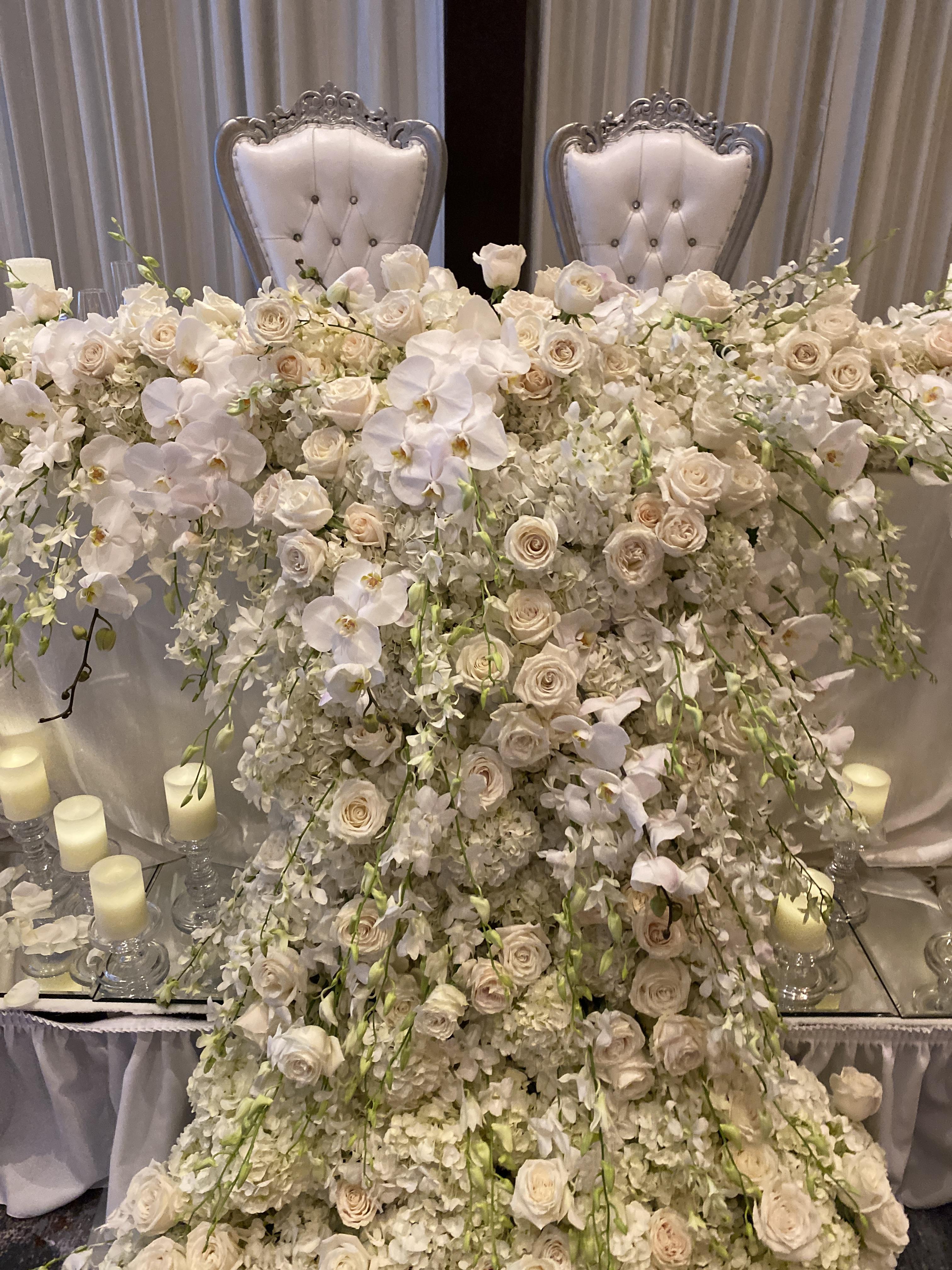 20 years of experience We provide full time service at affordable rate Many decor rental items available with floral order. Backdrops, chuppah, candelabras, ceiling decor installation, floral wall, plexiglass white round circular backdrop, pedestals, ..... All floral decor designed to fit your style and budget.