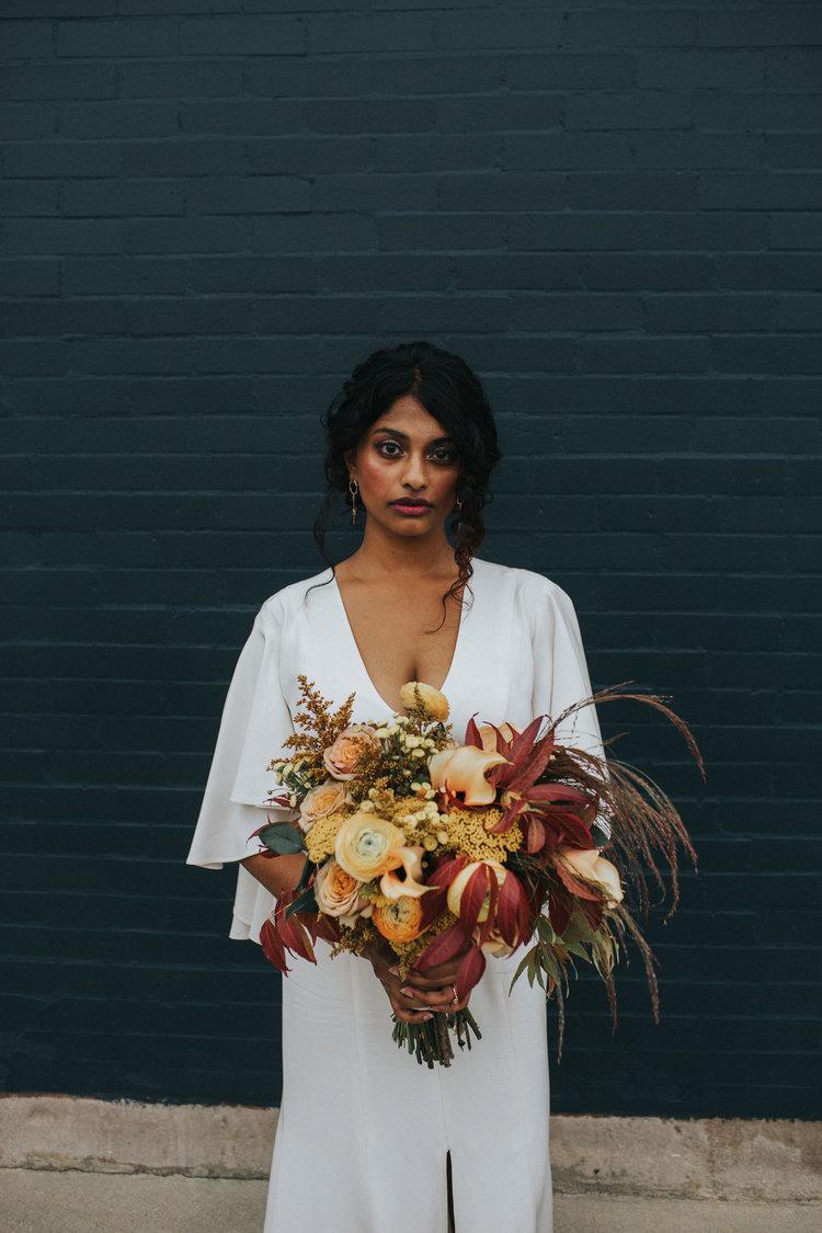 My combination of fresh floral from the market and foraged blooms from our city makes for the most unique color palettes. I concentrate on large focal blooms for a dramatic feel and finish with detailed soft floral elements for romance!