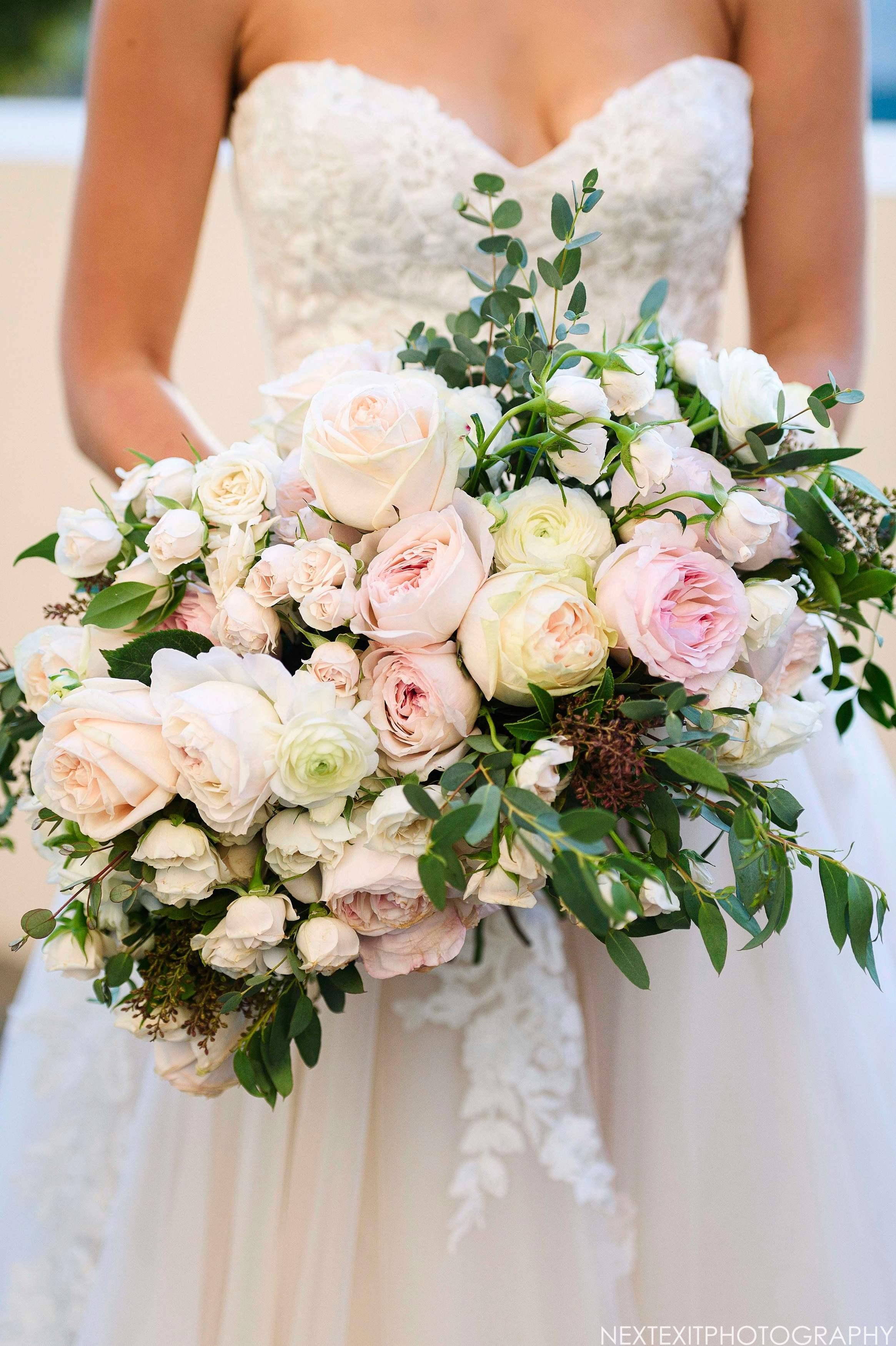 Focusing on family and friends and keeping your wedding intimate doesn't mean you have to forgo amazing and personalized florals. Classic white and cream florals with greenery accents ensure a timeless, elegant floral design to compliment any venue. A traditional floral selection, including roses, hydrangea and lisianthus is accented with interesting seasonal blooms and foliage (you can specify dark greens, sage/eucalyptus greens). Ratio of flowers to greenery is 60/40.
