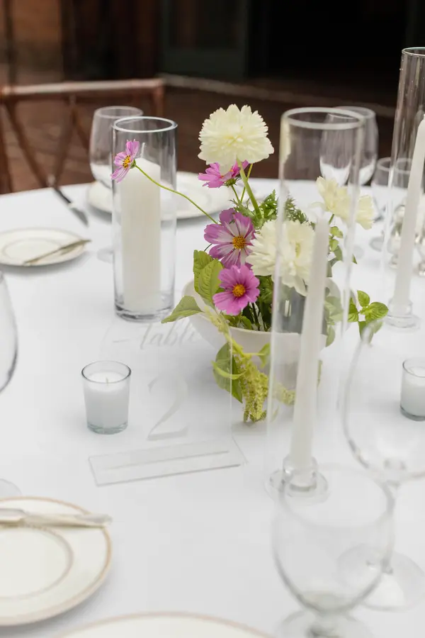 Working with Mary (and Nick!) for the flowers for my wedding was a great experience. You can tell from the photos on the Kvetka website and socials that Mary is extremely talented and has an incredible eye for texture and form. My main goal with the florals was to create a high end feel within a reasonable price range and Kvetka Flower absolutely delivered on that. We received many compliments from friends and family on the flowers and people got to take home little bouquets at the end! Throughout the process Kvetka was able to adapt to some changes and additions that I requested as well. For reference in the photos, we requested medium arrangements for the round tables with an "airy" feel (as opposed to a fuller arrangement in a different vessel) and bud vase runners for the rectangular tables. They also created large arrangements for the seating chart, welcome sign, and ceremony area (which were then moved to the head table in front of us for the reception)! They also provided petals and baskets for our flower grannies :') Overall I can't thank Kvetka Flower enough, and highly recommend this business to anyone looking for flowers for any occasion.