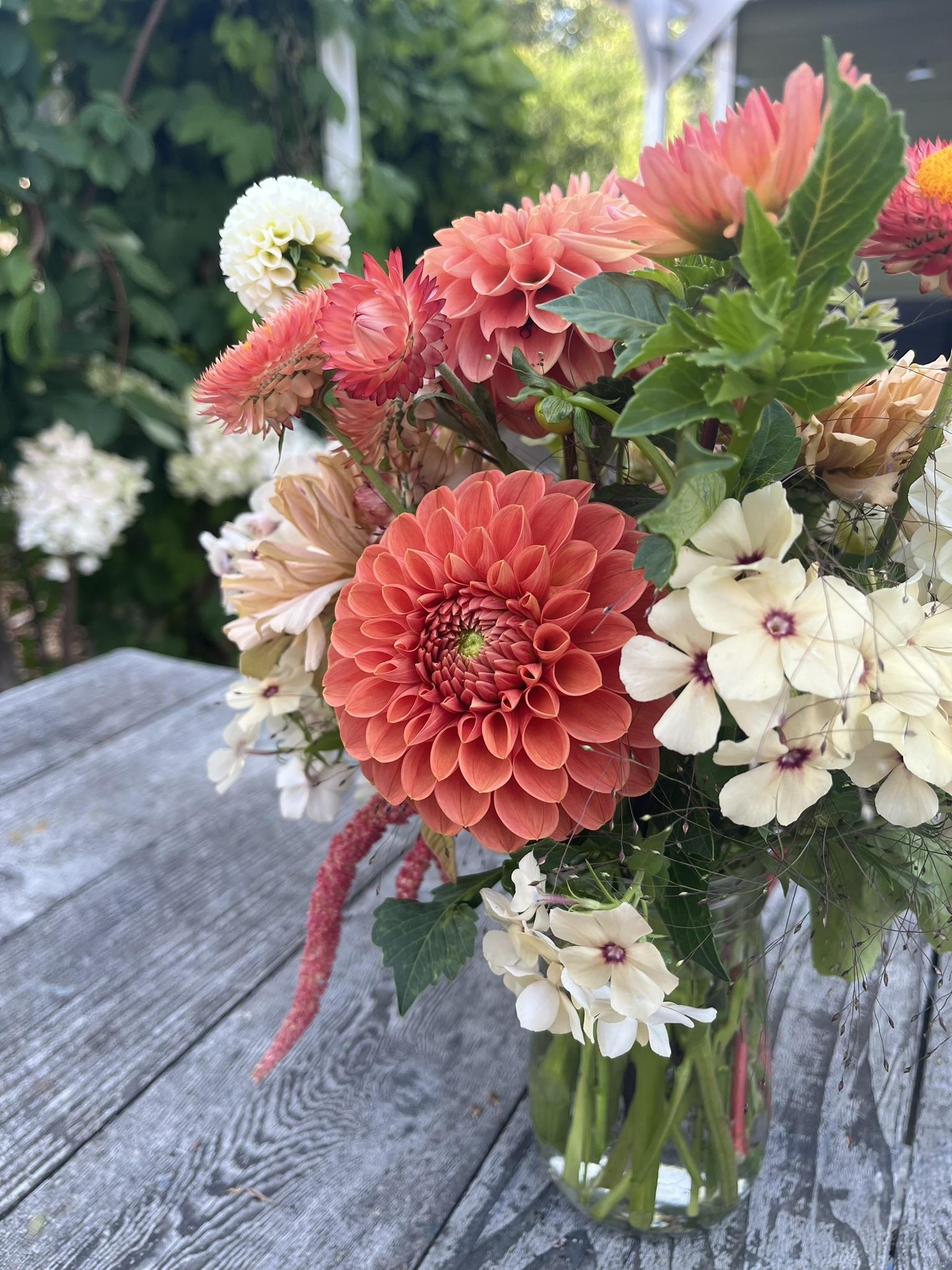 Hi, I'm Maddie! An overly abundant garden paved the way to our backyard urban flower farm in Snohomish-- with my husband, two kids + our dog in tow, we work hard to grow some of the best, most beautiful flowers you'll find in the Sno Valley. We're here to turn your DIY floral visions into reality with gorgeous, seasonal flowers. Bespoke, whimsical arrangements are my favorite, but also love romantic, flowy styles. I live for bold color and textures in my florals!