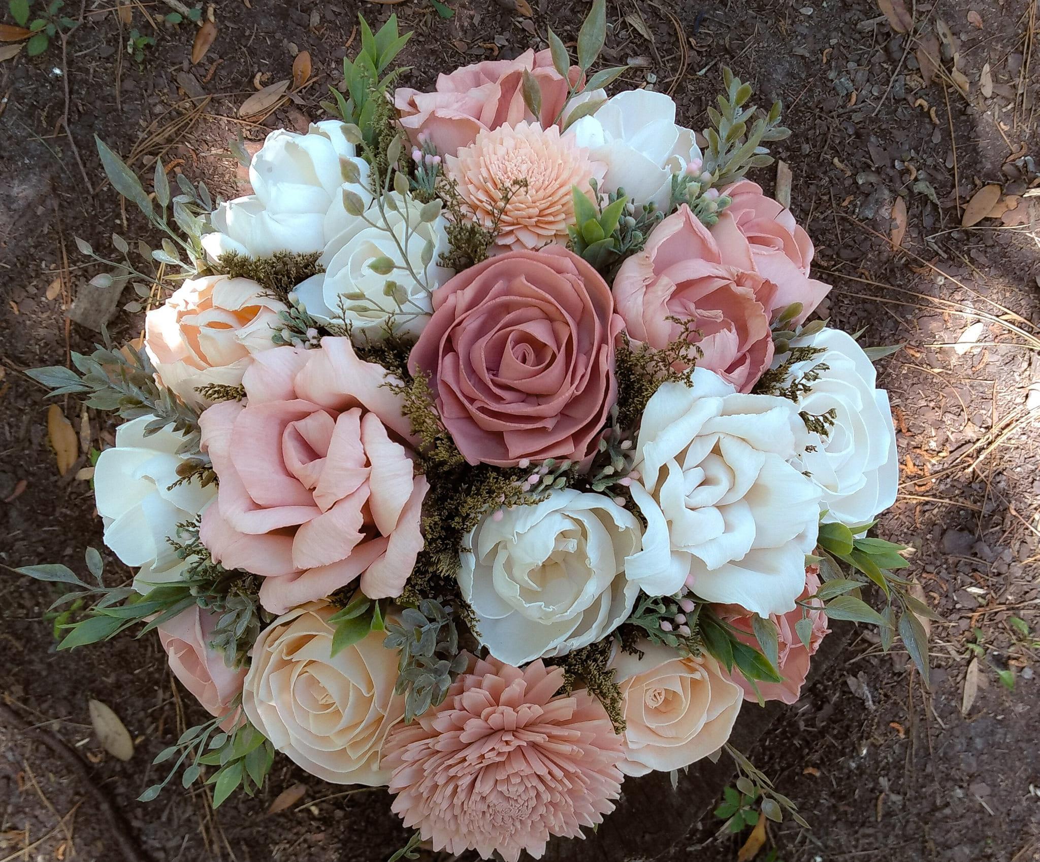 Pinewood and Petals allows our clients to see their florals well before their wedding date. Our clients get to have the creative freedom to pick and choose colors, accents, flower types, styles, and greenery WITHOUT breaking the bank. On top of this, our clients get to keep their bouquets and arrangements forever. While our flowers are not real, they are organic. They are made from wood and most greenery is preserved -allowing our clients to enjoy their arrangements for years. Our bouquets tell and show a unique story - wow your guests with the beauty of our wood flowers and the story they tell. This is Pinewood and Petals