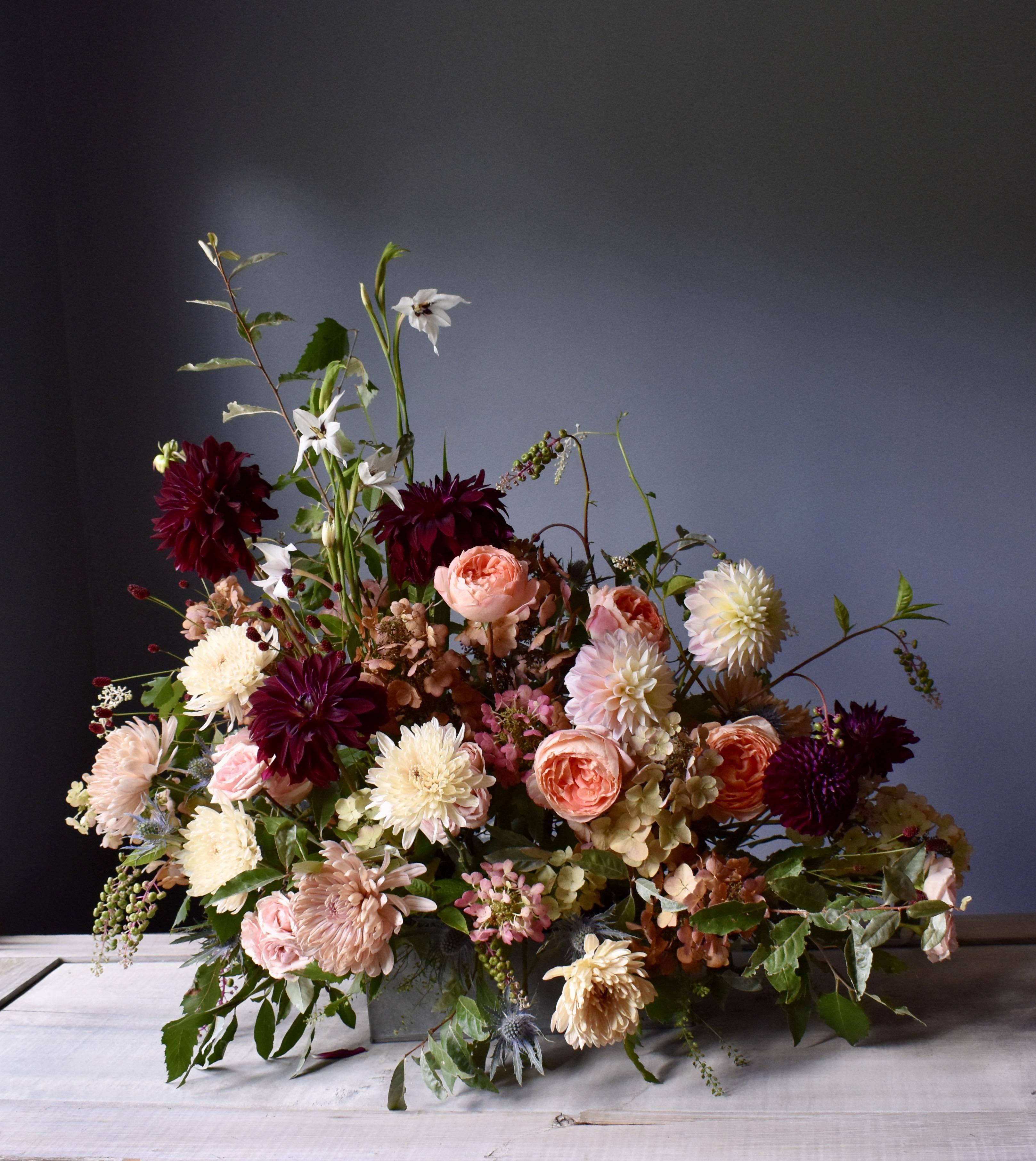 Designer Mary B. Hayes of Semper Virens Flowers creates spirited, natural florals for weddings and elopements. We use seasonal flowers and textural foliage to create bespoke florals for you. Our flowers will bring so much beauty and spirit to your wedding! We take care of all the details, so you can simply show up and enjoy your big day. We also offer workshops and flower bars, which are perfect for a bridal shower or reception activity.