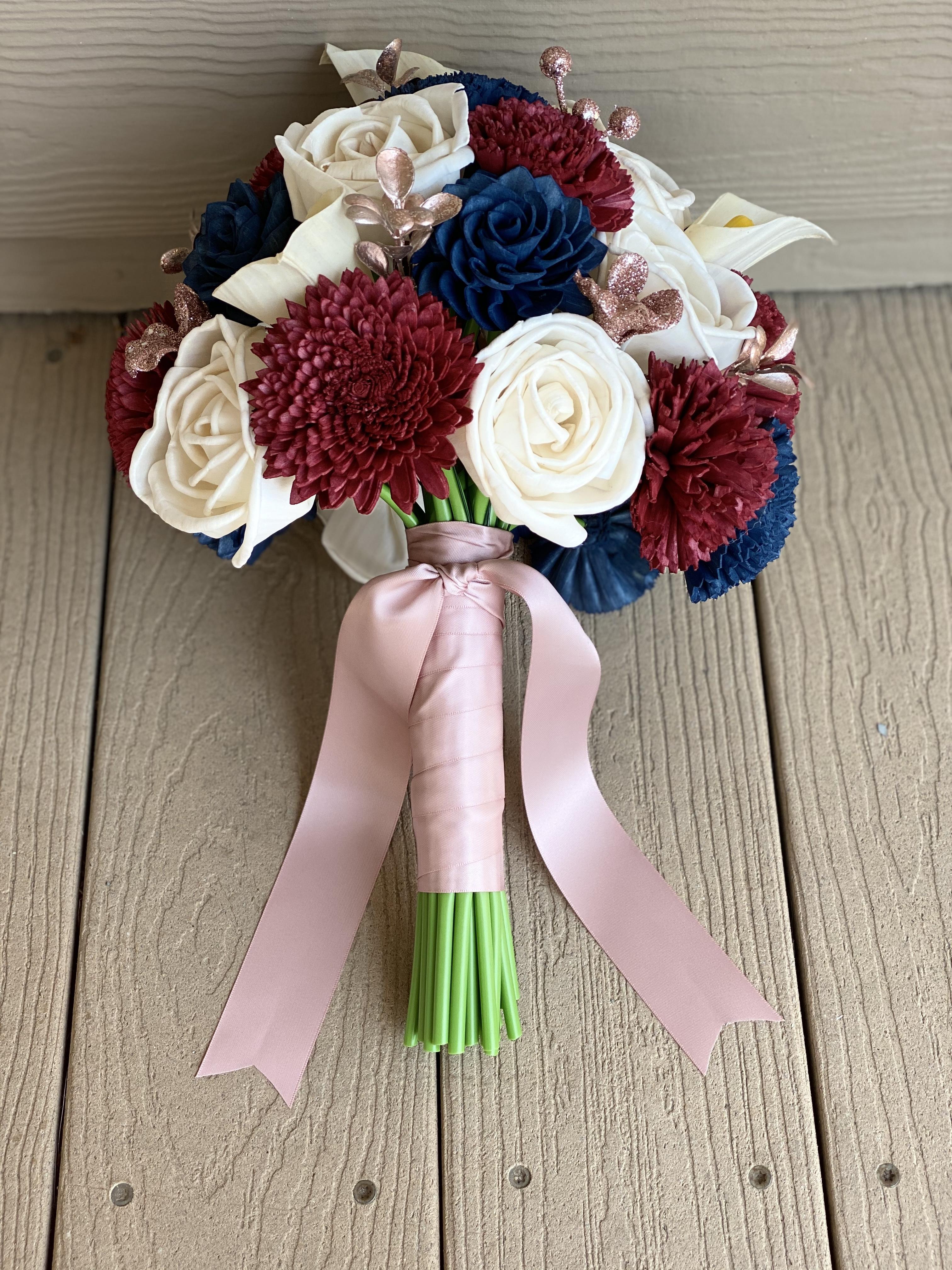 Wood flowers are the new and upcoming trend. There is no preservation required after your big day-simply drop them in a vase and use as a home décor piece. Our flowers can be custom dyed specifically to match your wedding colors. There's no such thing as seasonal flowers when it comes to wood flowers!