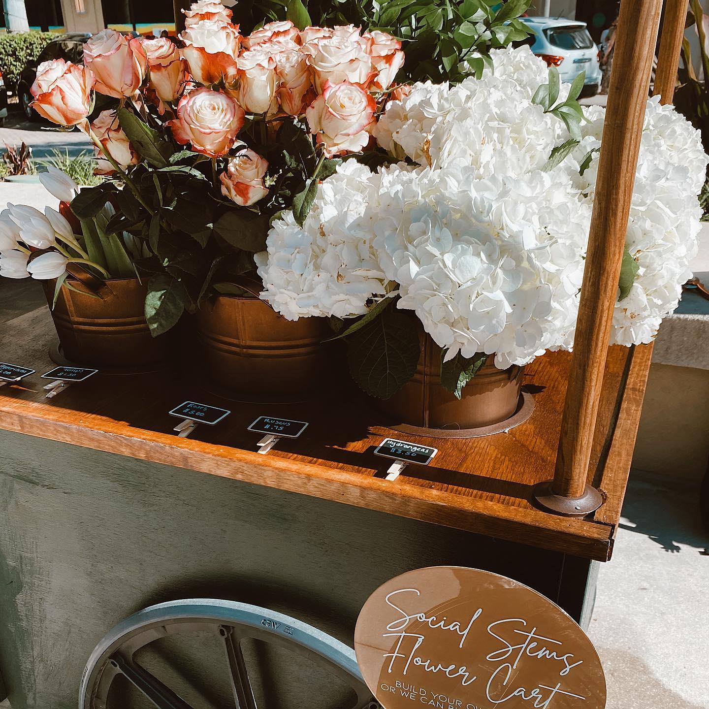Hello! My name is Lauren and I'm the owner of Social Stems Flower Cart! My vision came from the love of flowers and bringing people together. I started Social Stems just last year in 2021 when I moved to Southwest Florida. The concept of my flower cart is to be rented out at private events such as weddings to give an interactive experience to your guests as well as a fun visual element! When you rent the cart out for your special day, your guests can build their own bouquets to bring home as a favor to remember the day! Everything is customizable. You can choose the color scheme and specific flowers on the cart all to match your aesthetic!