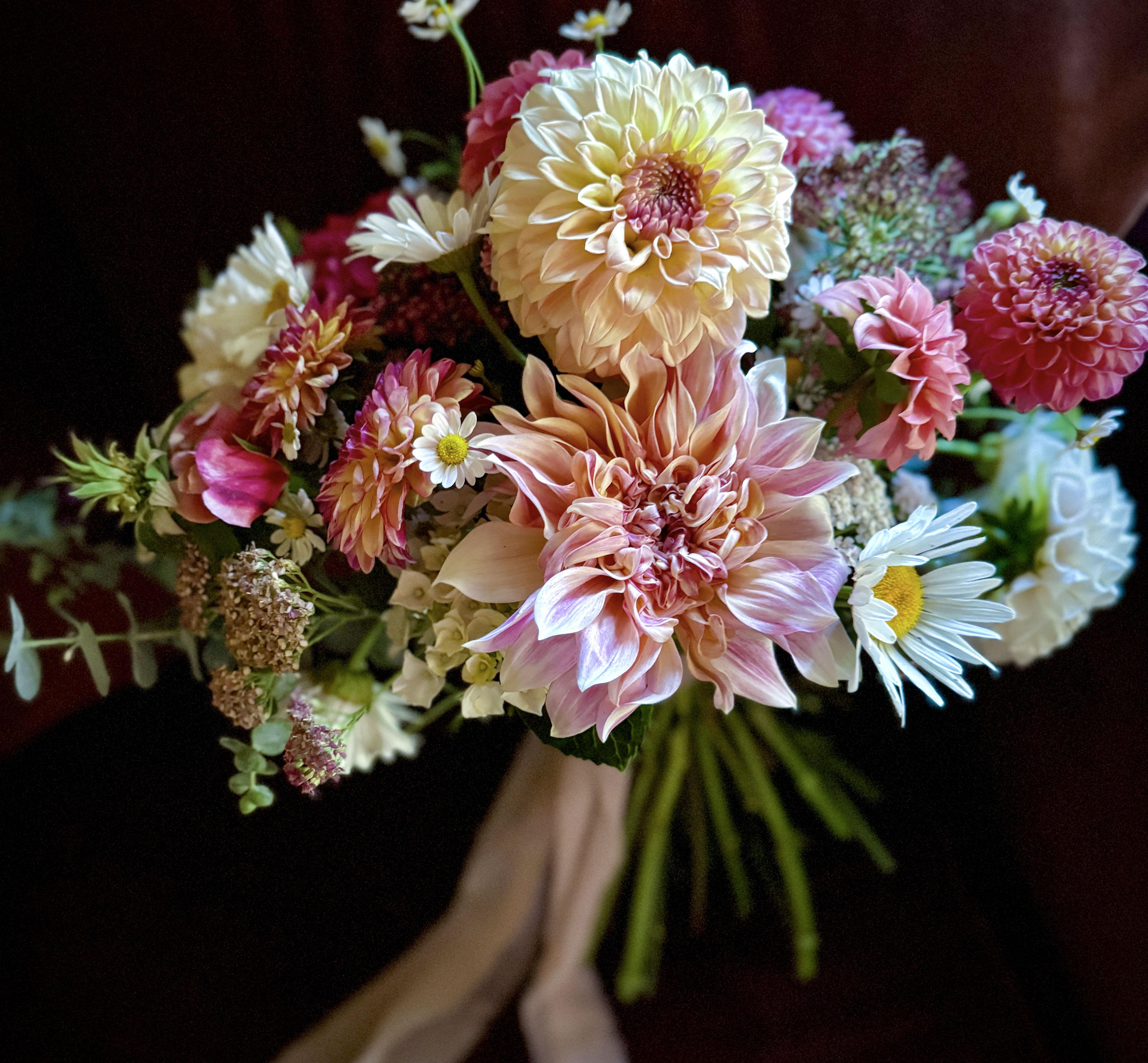 Your wedding flowers are grown on our farm in Soquel, just a few short miles from the Monterey Bay. We employ sustainable practices in order to both grow stunning blooms and be stewards of the land. Pollinators love us! We work with alternatives to floral foam and do not contribute to the carbon footprint that occurs when flowers are shipped from outside the U. S. I am a member of Slow Flowers and have studied with many of floristry's leading designers.