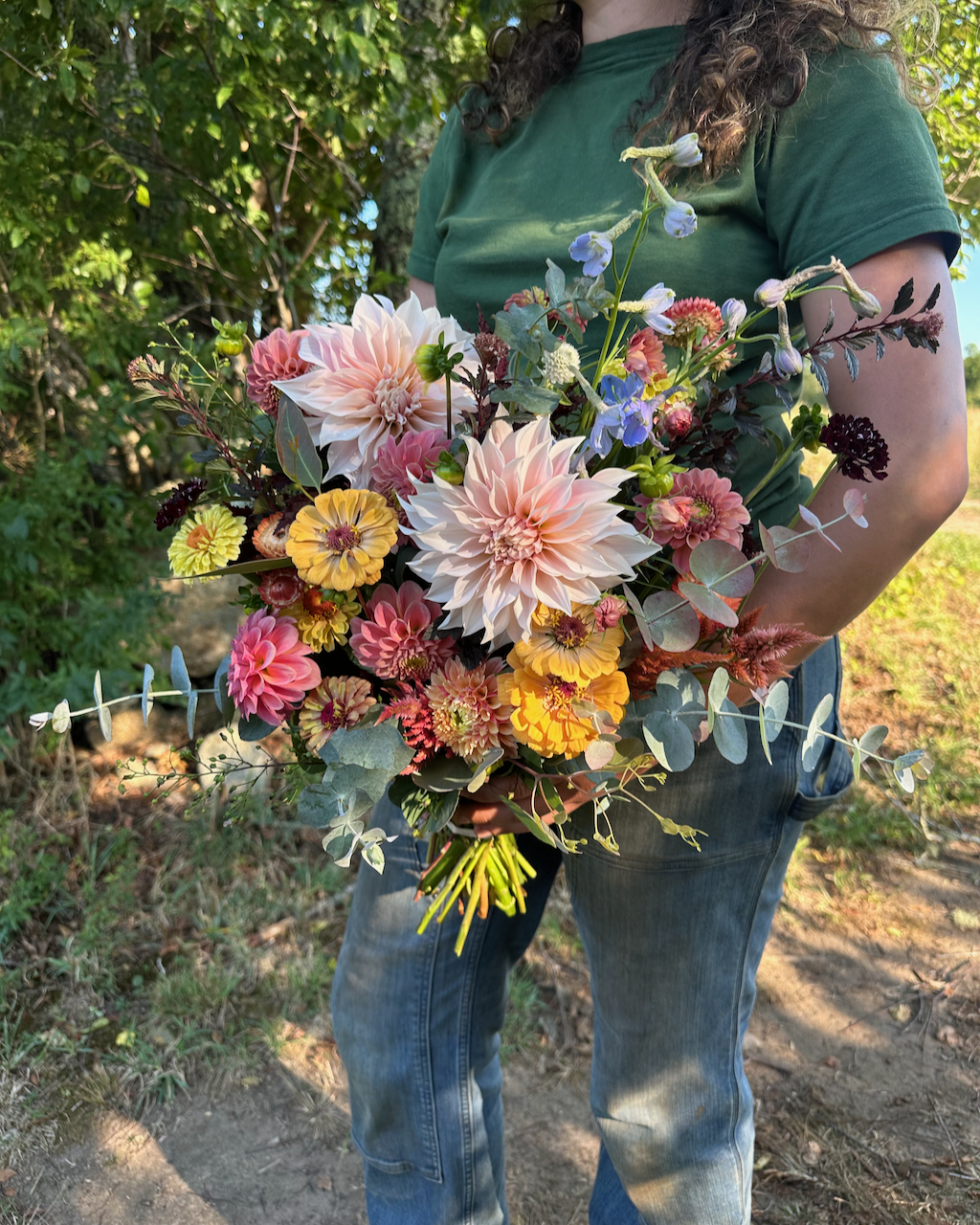 We are an environmentally conscious operation focusing on the health of our local ecosystem. We organically grow all of our flowers, from seed to harvest. This means we hand select each stem to ensure top quality, and we grow certain crops specifically for our couples. As farmers, we have a deep personal connection to our flowers, and this shows in our work. Please take a look at our reference photos! Some photos show arrangements sold to non-wedding outlets, but all are good examples our style which we can expand to fit your wedding needs. There are additional bouquet photos on our instagram under the same name. Thanks for considering us!