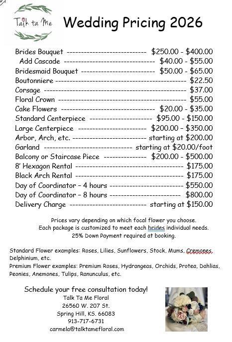 Talk Ta Me Floral knocked it put of the park with our wedding florals! We were amazed and in awe of the GORGEOUS flowers that they designed for our wedding ceremony and reception. The flowers were stunning and our guests couldn’t stop raving about how beautiful they were. They completed a piece for the cross, two large arrangements for the church, florals for the pews, and 25 centerpieces for our reception along with cake florals. The flowers were top quality and lasted for several weeks after the wedding. The consultation process was easy and straightforward. I highly recommend Talk Ta Me Floral for any of your floral needs. They are the best!