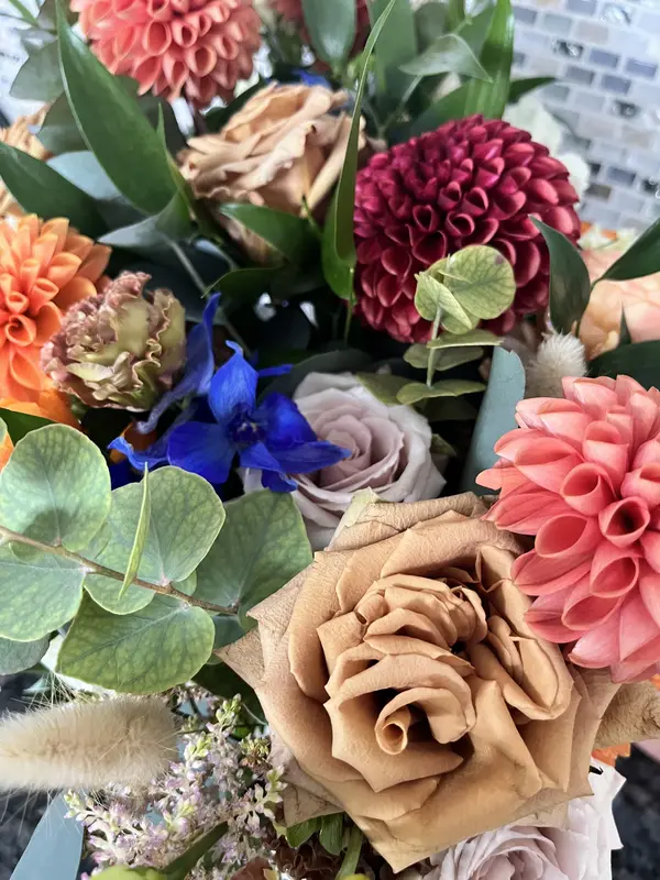 I opted to go with Vera Blooms Designs after 1 phone call because I knew Anastasija understood my vision and what I was looking for. I wanted fall inspired blooms with a hint of blue added in. When they were delivered, we could not have been happier. They were beautiful, fresh, and exactly why I asked for. They were still holding up when I shipped them out to be pressed 2 days later. The groomsmen were even impressed with their pocket square boutonnières. Anastasija knows her flowers and her eye to create your vision is top notch.