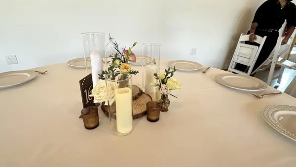 Created for couples hosting receptions with banquet or sit-down dinners. Includes show-stopping floral arrangements for tables and décor. What’s included: • Bridal bouquet + groom boutonniere • Bridesmaids & groomsmen florals (up to 5 each) • 10 fresh floral centerpieces for reception tables • Sweetheart table floral arrangement • Cake flowers or dessert table decoration
