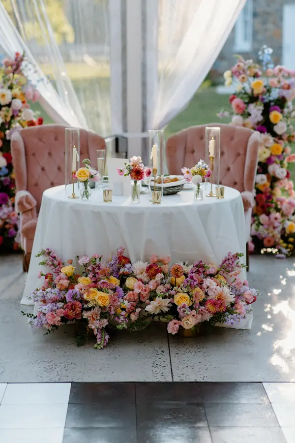Working with Misha was an absolute dream! She understood my vision and then amplified it x100 to help design the most vibrant, garden party chic floral displays ever! Walking out on my wedding day and being surrounded by beautiful flowers was amazing. Misha is so easy to communicate with and really helped take flowers completely off of my plate once she understood the vibe I was going for. She even helped me decide to do all different dresses for my bridesmaids which was so fun! She worked seamlessly with the décor and signage gal (Kelsey of Creamery Hill). Many times throughout the night, I was told that my flowers were the most gorgeous my guests have ever seen at a wedding. THANK YOU MISHA!
