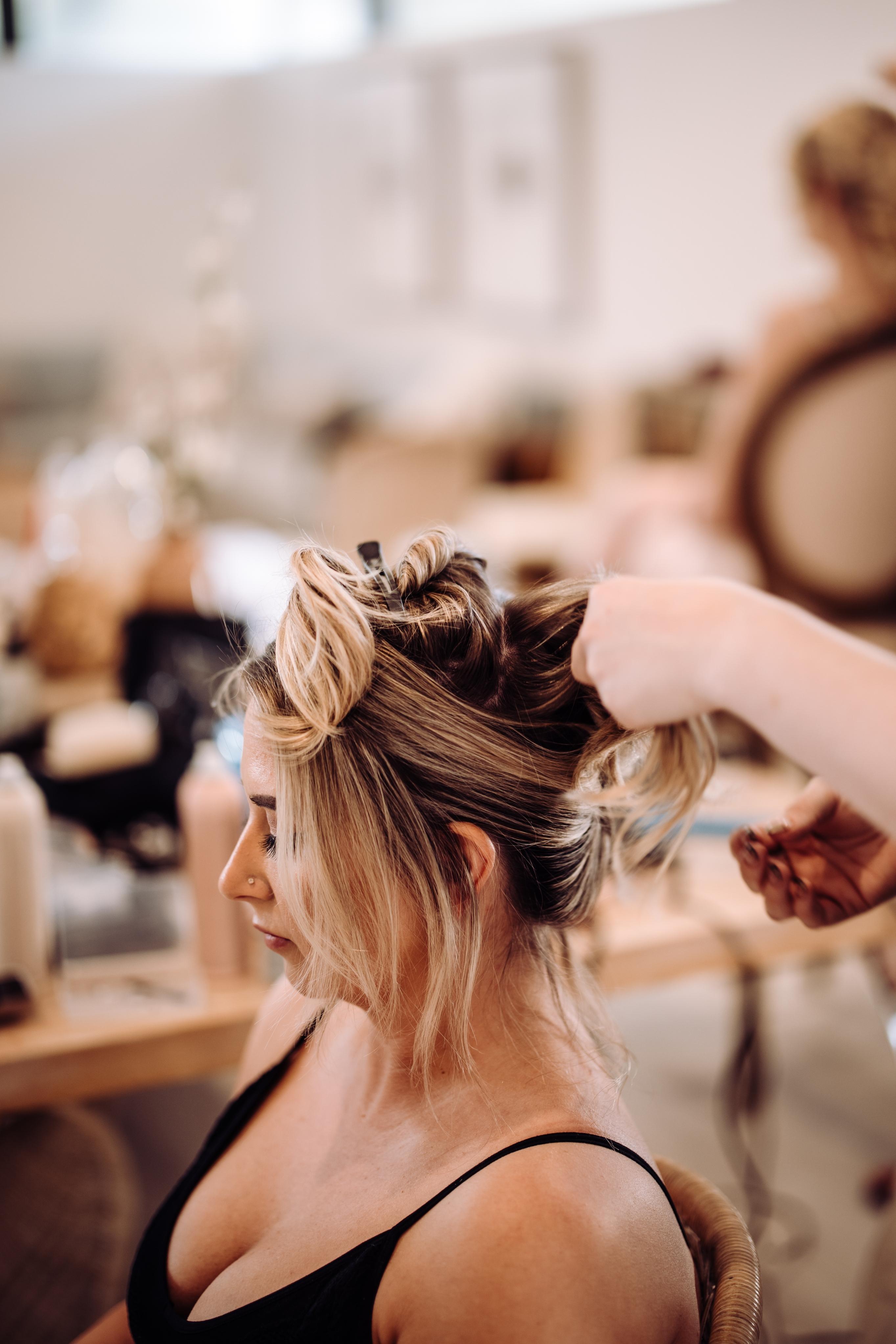 Hair and makeup for the bride and hair and makeup for 3 bridesmaids and/or mothers plus a bridal touch up kit