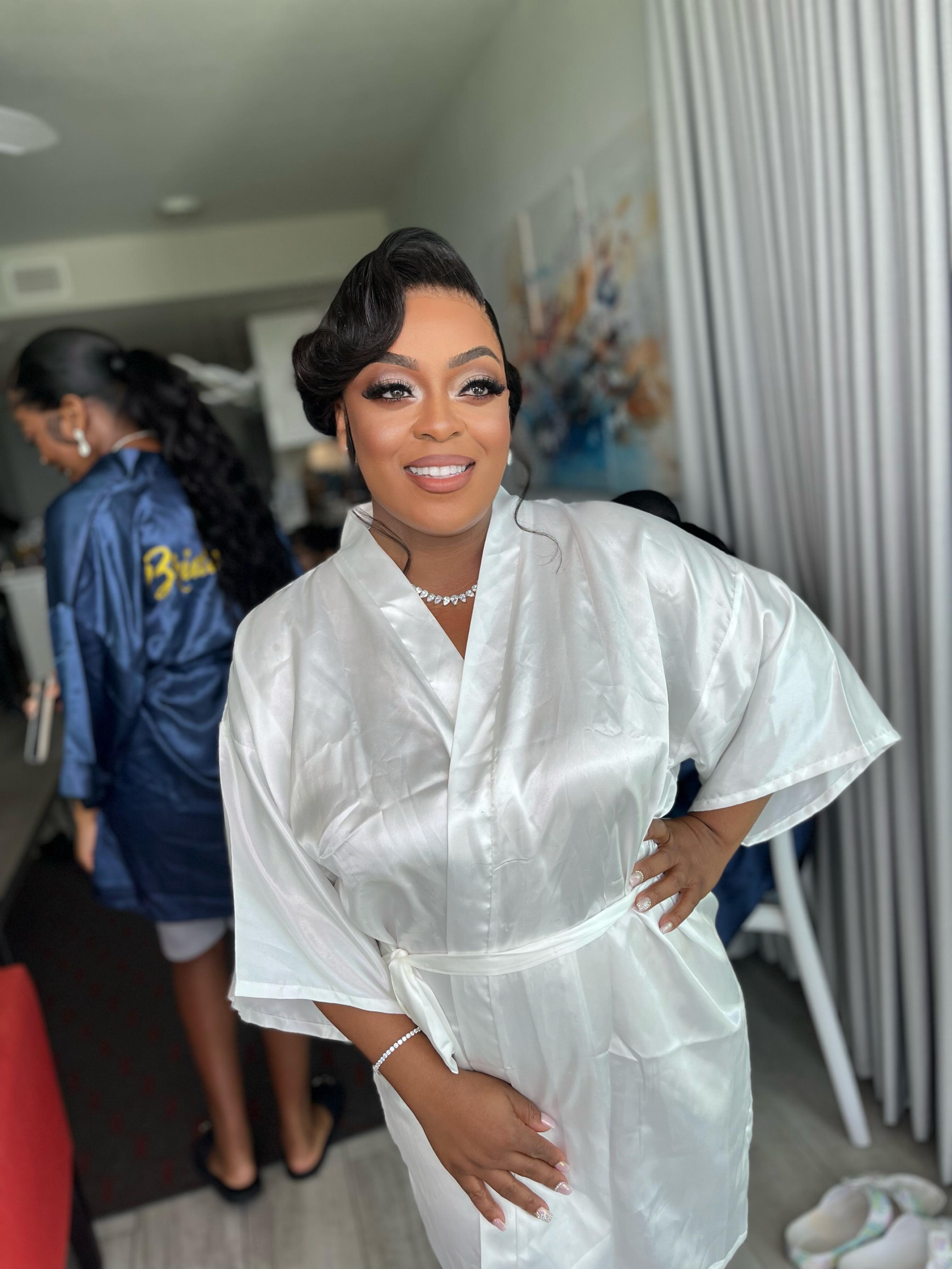 I loved being a brown beauty bride! Kadi delivered to the moon and back. Being light skinned with a bridal party of all brown skinned girls it was important for me to work with someone who had experience with all of our beautiful shades of brown. She was extremely progressional and responsive during the inquiry process and ultimately it’s why I decided to book her over other artists. She is a bridal stylist and it shows. Everyone loved their look including me. Kadi was very open to feedback during the trial as well as after and during the application on the big day. I was plagued with a breakout the week of the wedding and needed extra coverage on the skin look and she more than delivered. Girlies, don’t hesitate. Book brown beauty club for your wedding and baby shower ;) . Her vibes were unmatched. She ended up taking over the playlist and really got us ready to head down the asile. Thank you!!!!