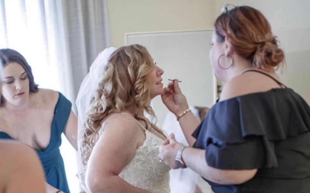 On site makeup service on wedding day Lashes $15 additional Lip sample for touch up included
