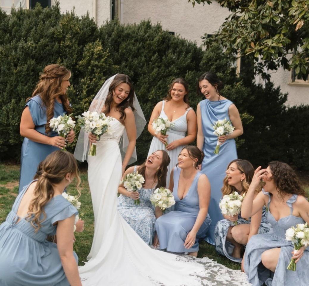 Bridal makeup + hair, 6 bridesmaids. This includes professional bridal hair styling and preparation, luxury skin preparation, individual lashes, and a personalized touch-up kit for the bride to keep throughout the day. For each bridesmaid- skin preparation, individual lashes and touch-up services included. Price varies depending on services selected: makeup, hair, or both.