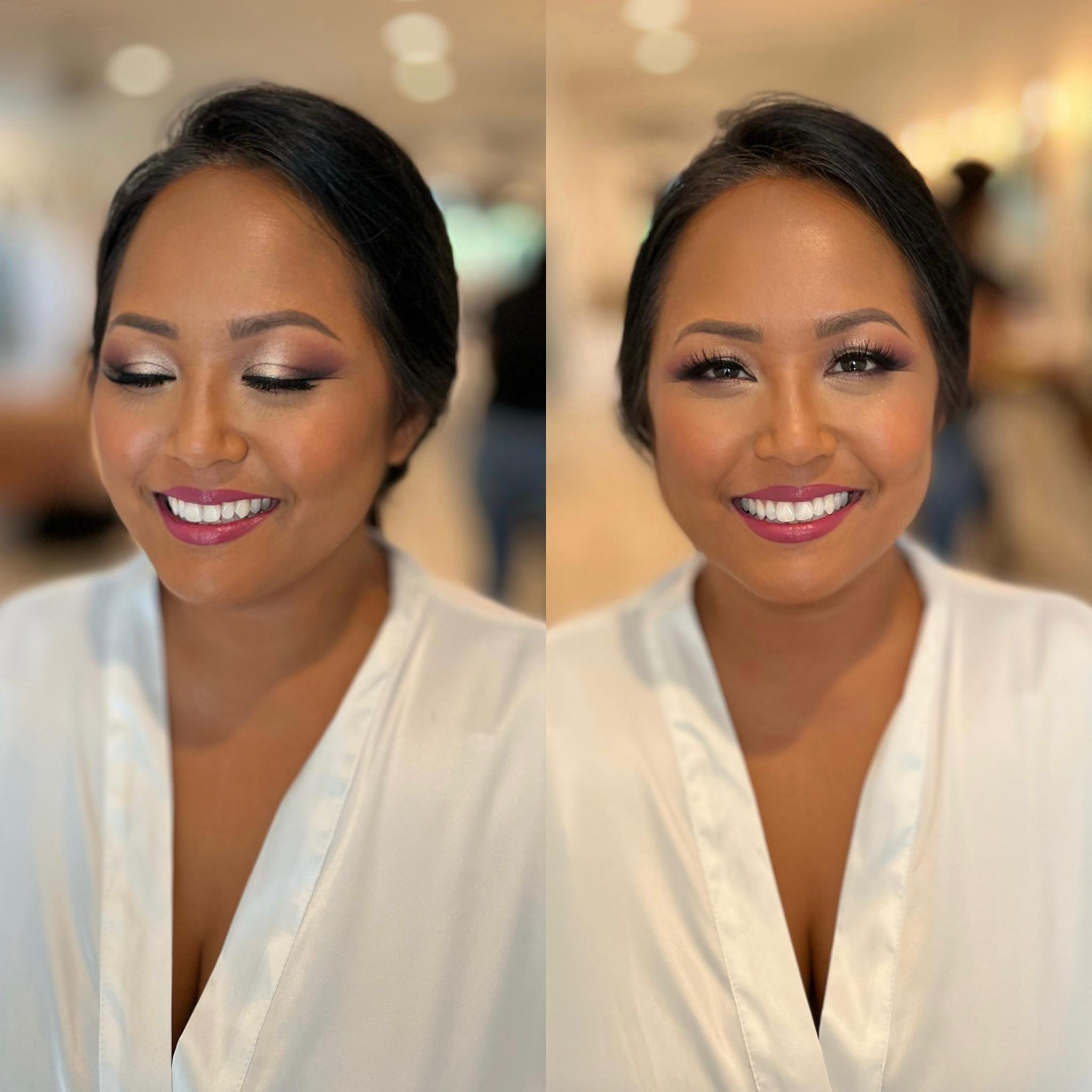 Glam by Ash was an absolute pleasure to work with for my wedding day beauty. From our very first consultation, the team was professional, provided clear instructions and information, and made me feel completely at ease. On the day of, they worked diligently to create makeup and hair that truly lasted for the full 8 hours of our event. Their expertise allowed them to beautifully transform my look while still enhancing my natural features. I've never felt so beautiful - they kept working at my hair until I felt it was absolutely perfect, and the makeup felt weightless yet still dramatic. Glam by Ash has the ability to work with my bridesmaids variety of skin tones and hair types, and I would highly recommend them to any bride-to-be looking for a talented and reliable beauty team to help make their special day everything they dreamed of.