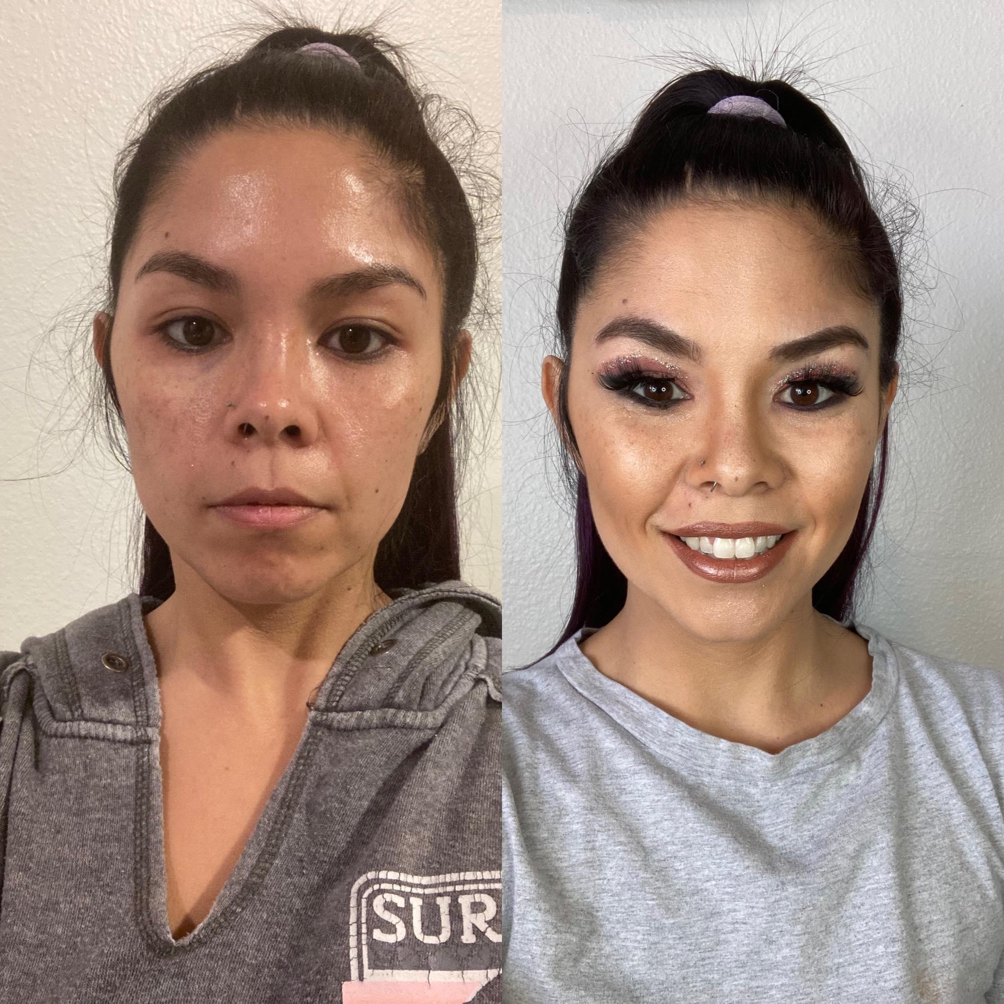 Full face glam for your special day. airbrushing available to make you look flawless with your choice of color shadow and lipstick. Lashes and finishing touches all included.