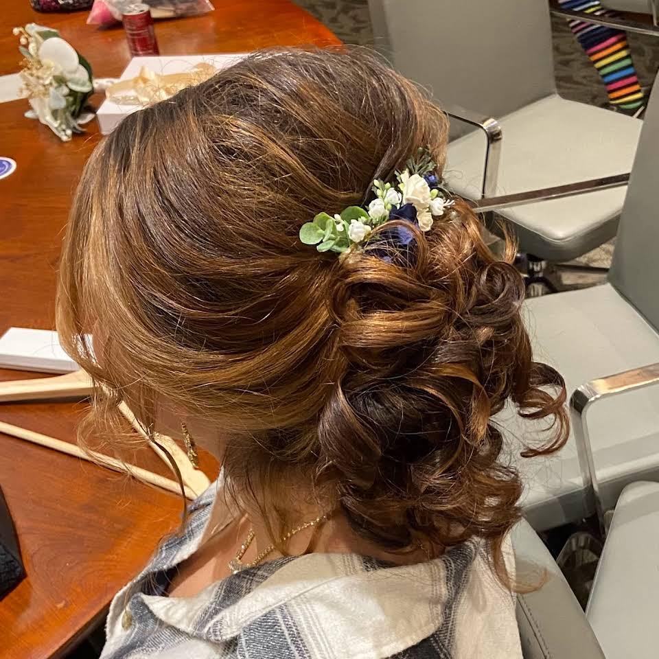 Mandi and her co-stylist Christine were awesome. Our hair looked beautiful and held through the drizzling day that was my outdoor wedding. Mandi is fun and easy to work with, is willing to do multiple styles, and is a calming presence on your wedding day. You want to book her!
