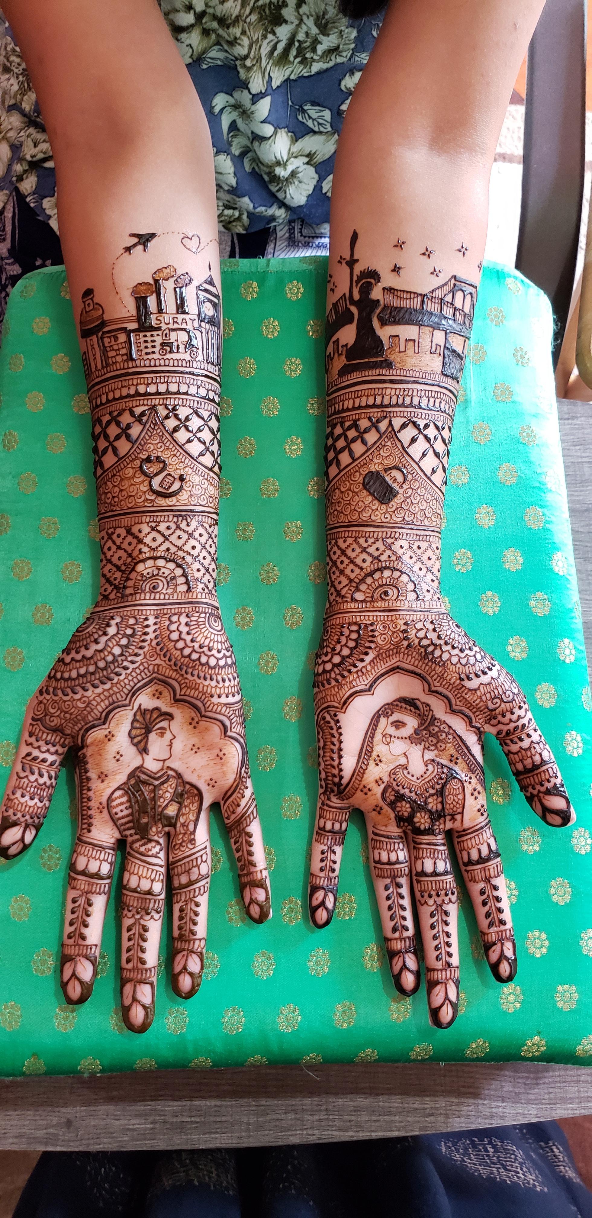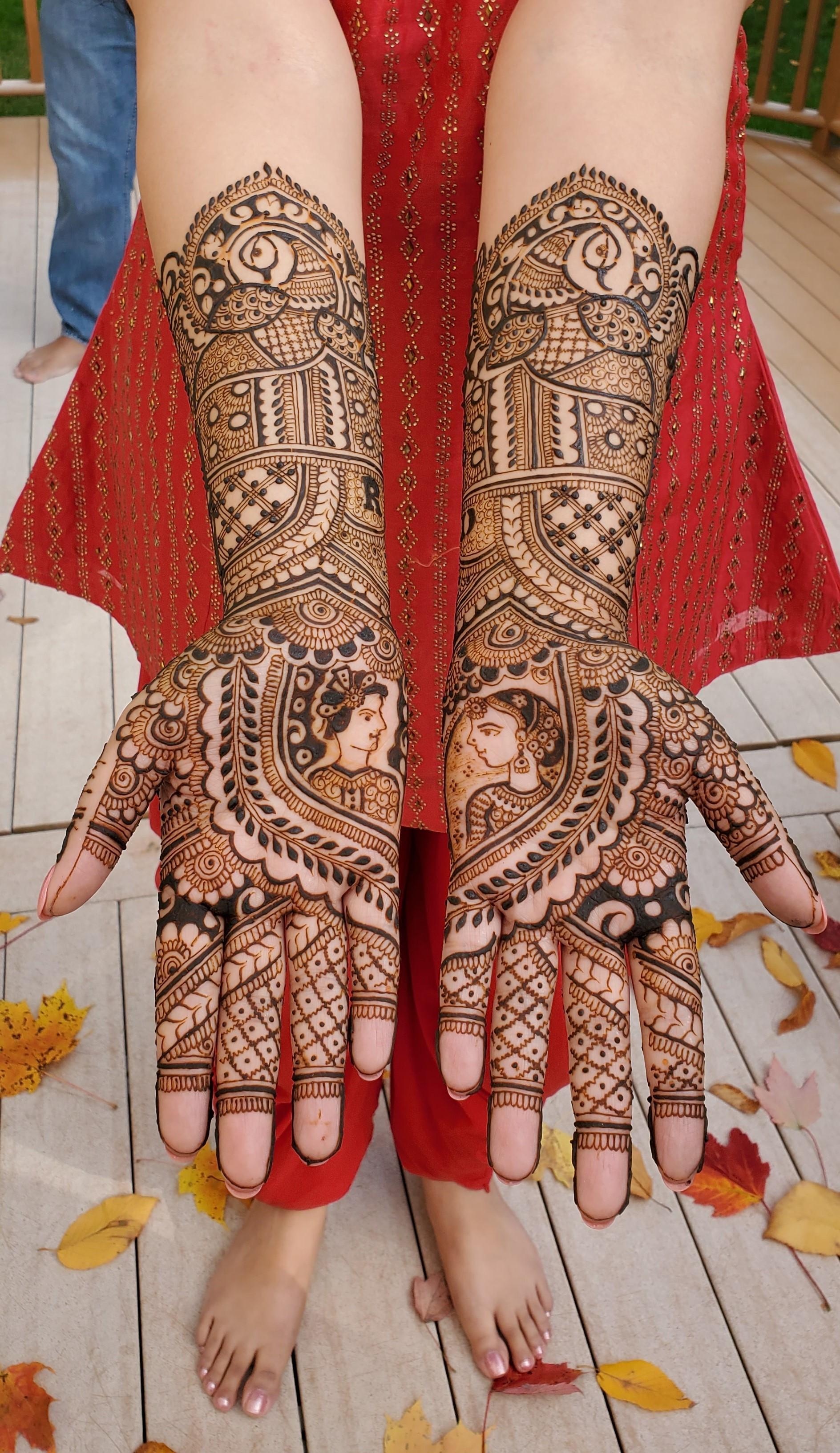 Tanvi did my mehndi for my wedding and she did an amazing job! Her designs are detailed, intricate, and beautiful. She takes the time to understand the design elements that are important to you, does her best to include them however she can, and gives great suggestions and recommendations. You can tell she wants your mehndi design to feel personal and special! Aside from her incredible talent, she is also extremely personable and so easy to talk to, making the process feel natural and comfortable. I would highly recommend Tanvi to others!