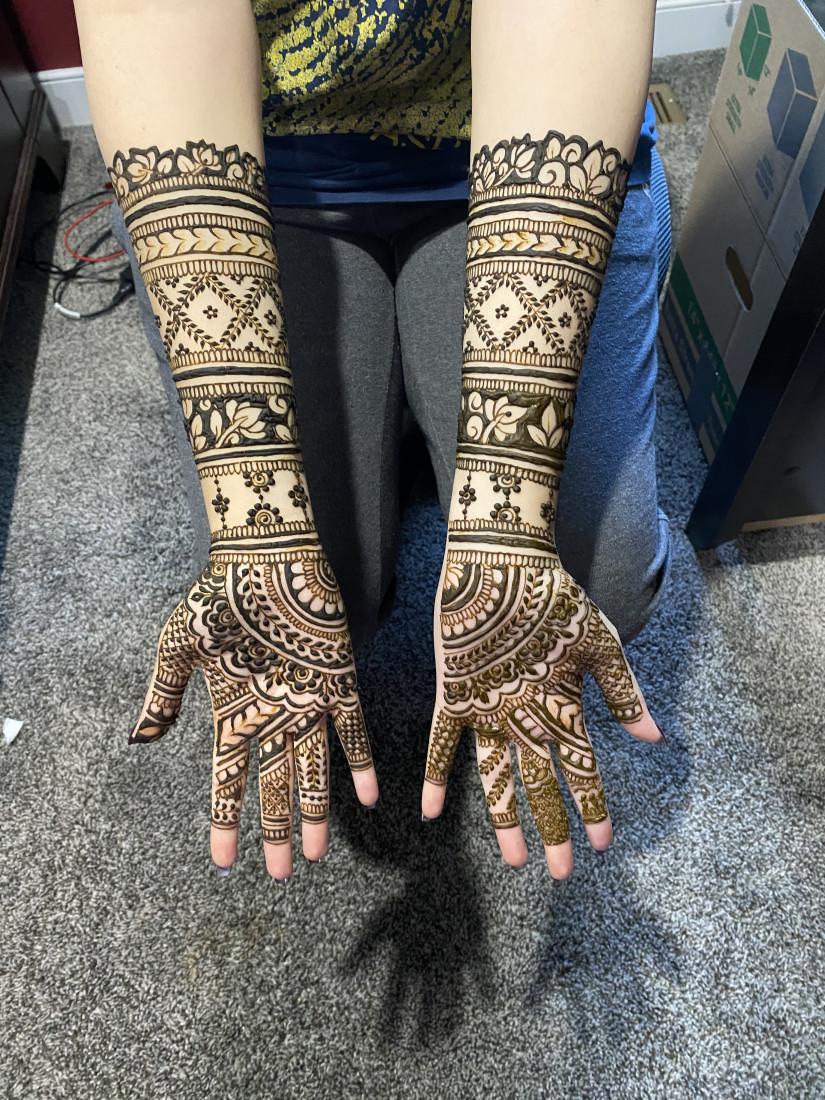 Our company prides itself on providing a unique blend of personalized wedding henna designs. Our skilled and passionate team creates one-of-a-kind bridal henna, fusing contemporary and traditional henna elements. With attention to detail and exceptional customer service, we try to create a relaxed experience tailored to each bride's vision. From small gatherings to grand weddings, our henna services ensure an unforgettable experience.